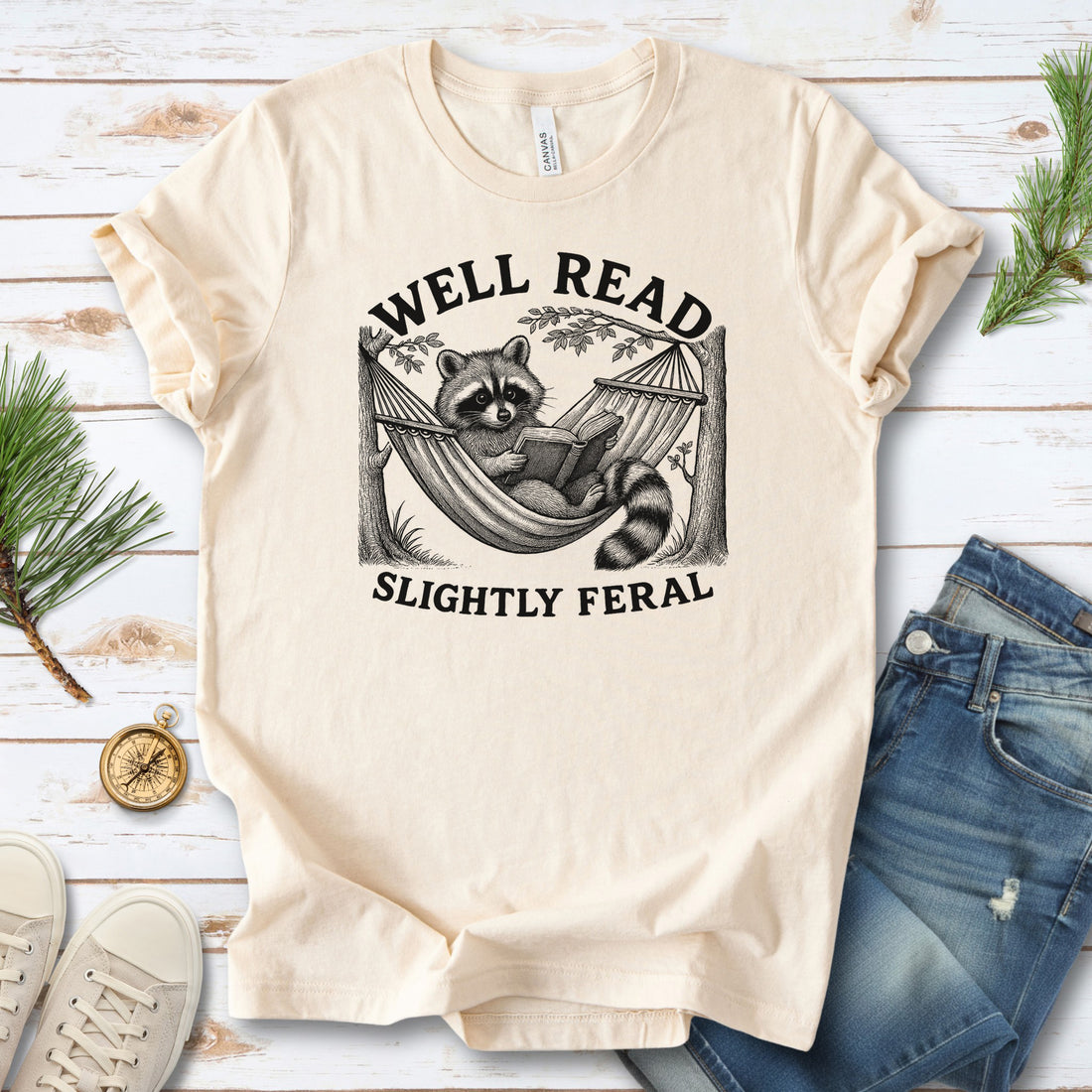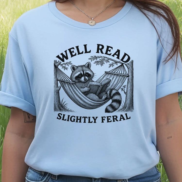 Raccoon Well Read Slightly Feral T-Shirt – Funny Book Lover Tee for Raccoon Fans