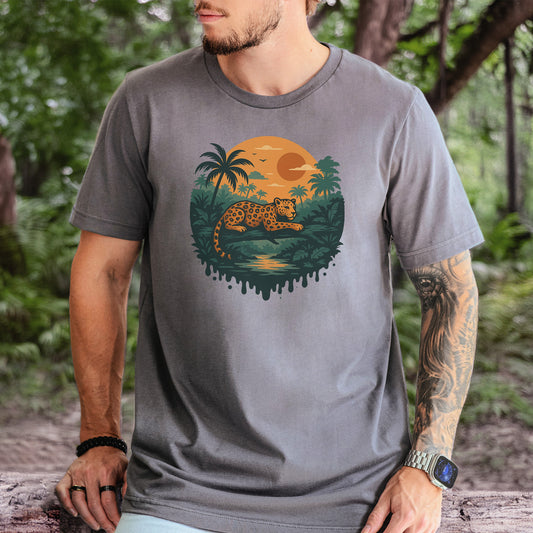Jaguar Jungle Sunset T-Shirt – Retro Rainforest Wildlife Tee