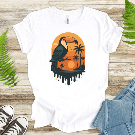 Toucan Tropical Sunset T-Shirt – Retro Jungle Bird Lover Tee
