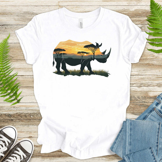 Rhino Savannah Sunset T-Shirt – Bold Safari Spirit Animal Tee
