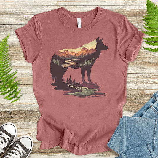 Wolf Silhouette with Night Mountain Scene – Wild & Free T-Shirt
