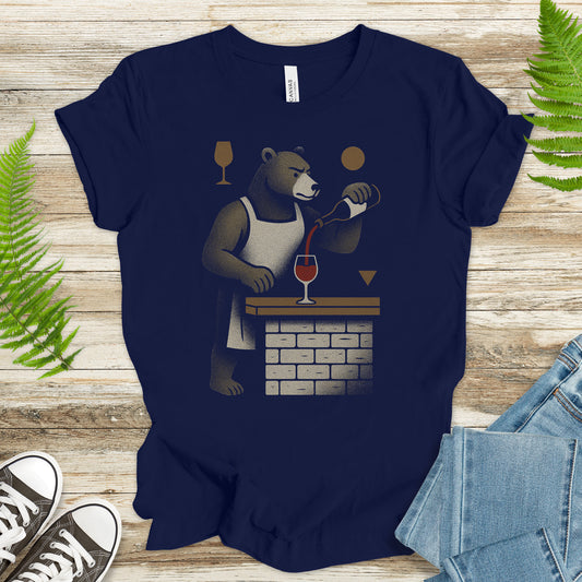 Bartender Bear Pouring Wine T-Shirt – Funny Vintage Animal Lover Tee