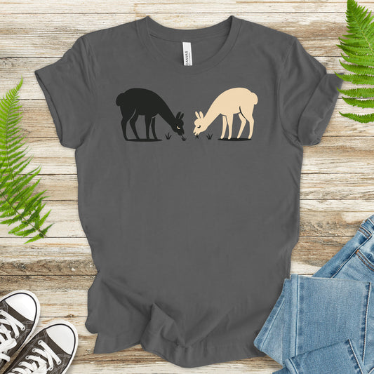 Black & White Alpaca T-Shirt – Cute Retro Animal Lover Couples Tee