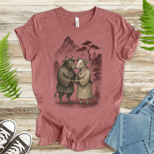 Bull and Cow Love T-Shirt – Vintage Japanese Romance Animal Shirt