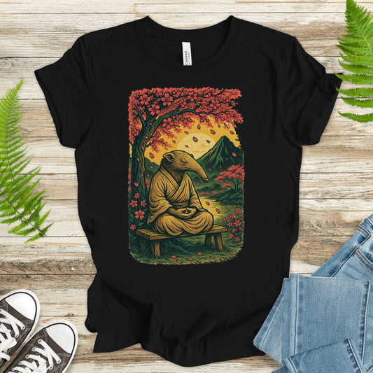 Zen Anteater T-Shirt – Meditating Animal & Cherry Blossom Tee