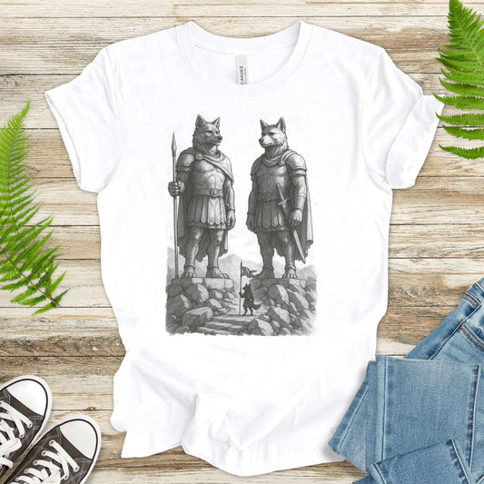 Wolf Guardian Statues T-Shirt – Viking Spirit Animal Fantasy Tee