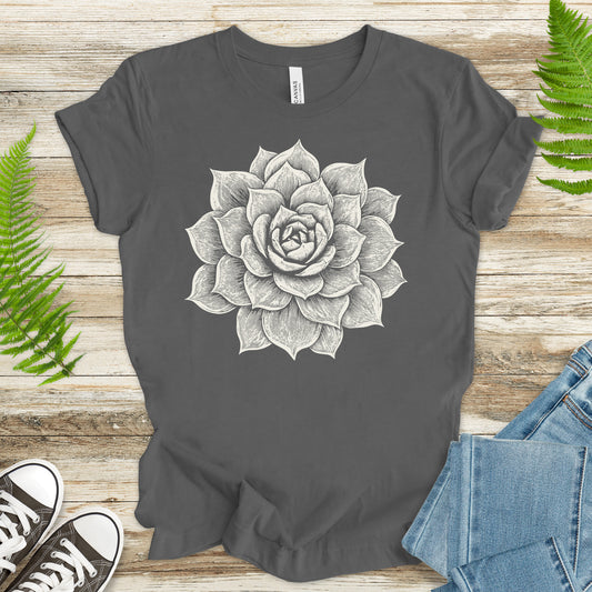 White Succulent Sketch T-Shirt – Vintage Botanical Garden Lover Tee