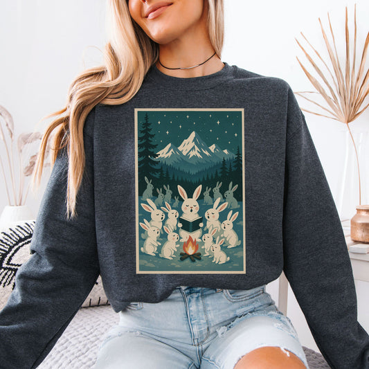 Bunny Choir Christmas Sweatshirt – Cute Campfire Carolers Vintage Vibes