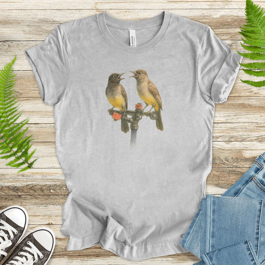 Funny Birds on Sprinkler T-Shirt – Cute Bird Lover Gift for Nature Nerds & Birdwatchers
