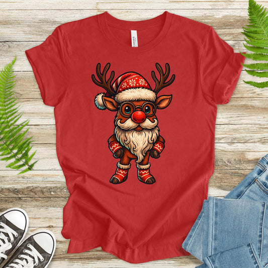 Santa Reindeer T-Shirt – Cute Christmas Deer with Beard Tee