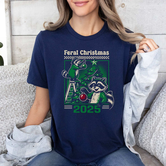 Festive Feral & Fabulous Raccoon T-Shirt – Funny Christmas Gift Tee