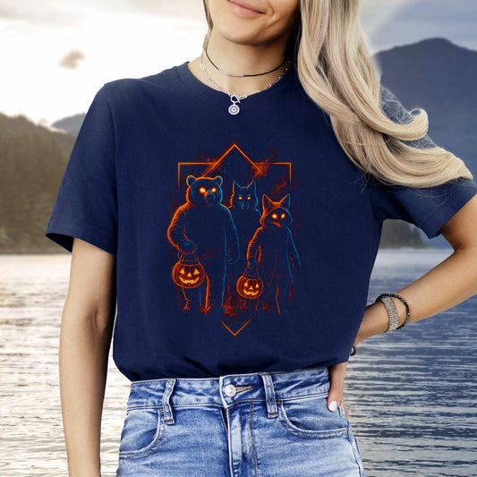 Trick-or-Treat Beasts T-Shirt – Neon Forest Creatures Halloween Tee