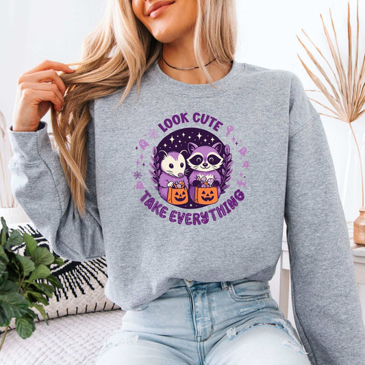 Opossum & Raccoon Halloween Sweatshirt – Look Cute, Take Everything