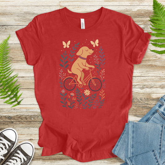 Joyful Dog on a Bike T-Shirt – Whimsical Nature & Butterfly Lover Tee