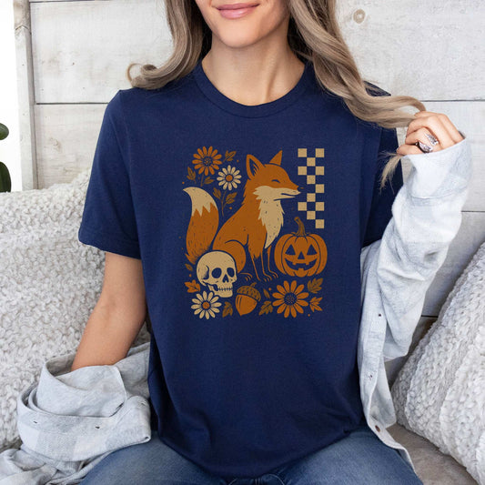 Halloween Fox T-Shirt – Spooky Floral Forestcore Pumpkin Vibes