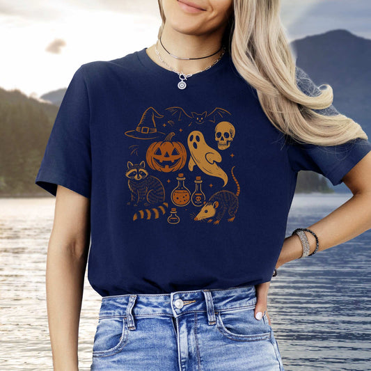 Halloween Raccoon & Opossum T-Shirt – Spooky Trash Panda Potion Vibes