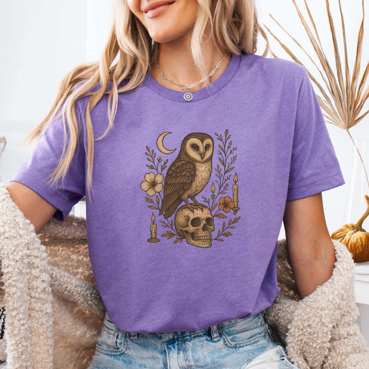 Haunting Owl & Skull T-Shirt – Gothic Moonlit Autumn Vibes