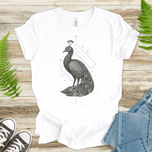 Geometric Peacock T-Shirt – Vintage Bird Art Spirit Animal Tee