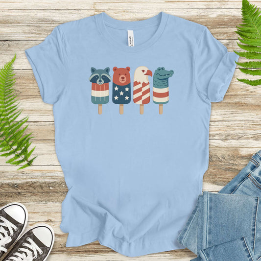 Patriotic Animal Popsicle T-Shirt – Funny 4th of July Ice Pop Tee