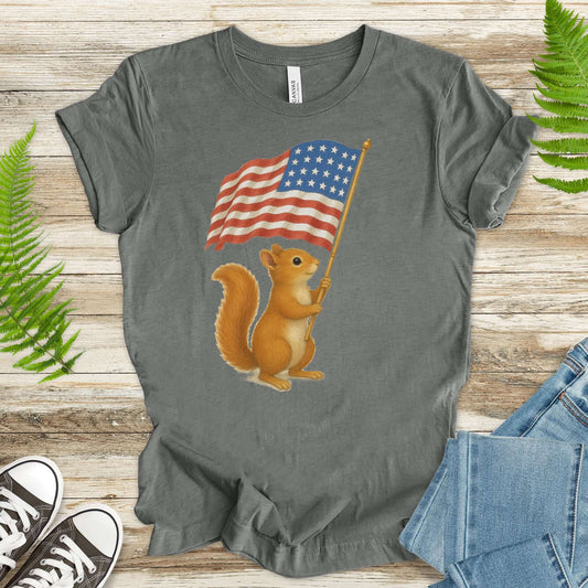 Squirrel with American Flag T-Shirt – Cute 4th of July Animal Tee