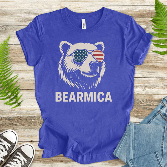BEARMICA 4th of July T-Shirt – Funny Patriotic Bear Tee with USA Flag