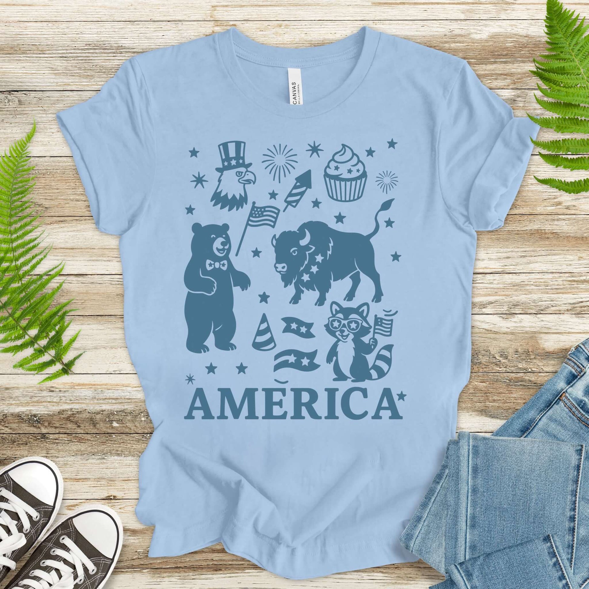 Uncle Sam? Overrated. Meet the real stars of the show—this Funny 4th of July Animal Party T-Shirt features a bear in a bowtie, a bison ready to boogie, a raccoon rocking star-shaped shades, and an eagle who’s clearly had too much liberty. Oh, and yes—there’s a cupcake too, because freedom is sweet.