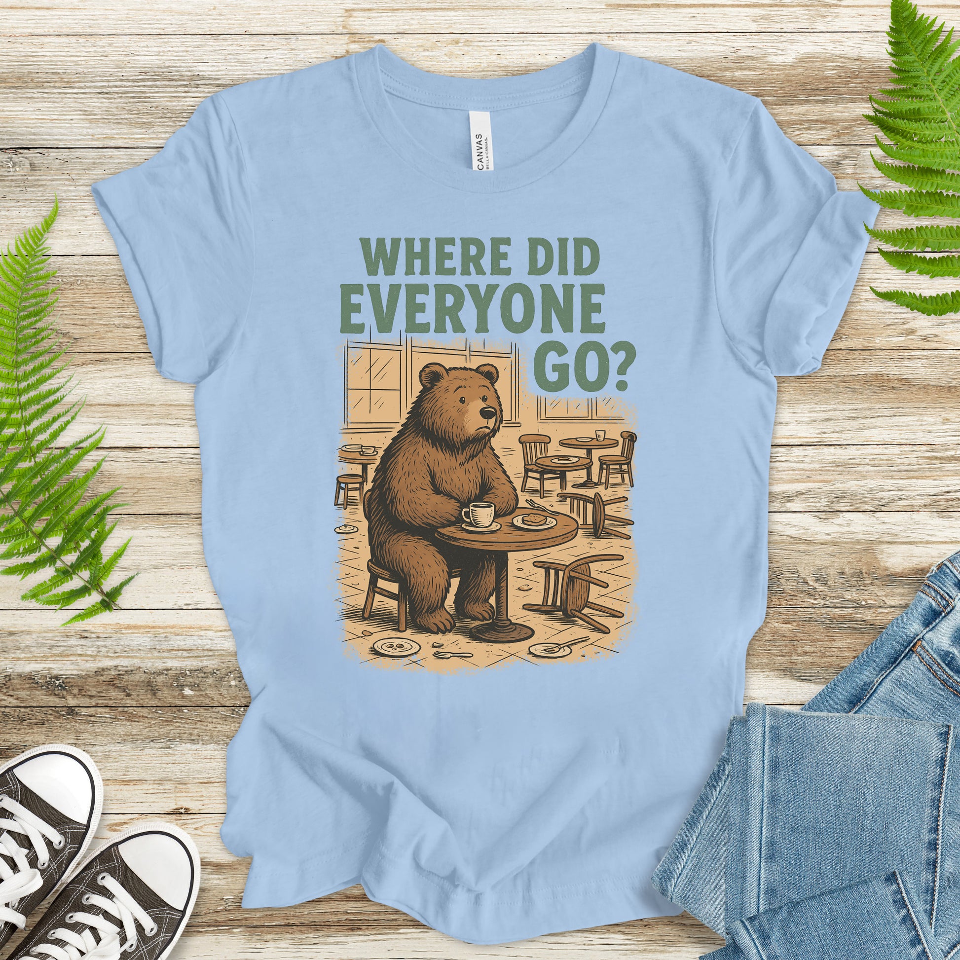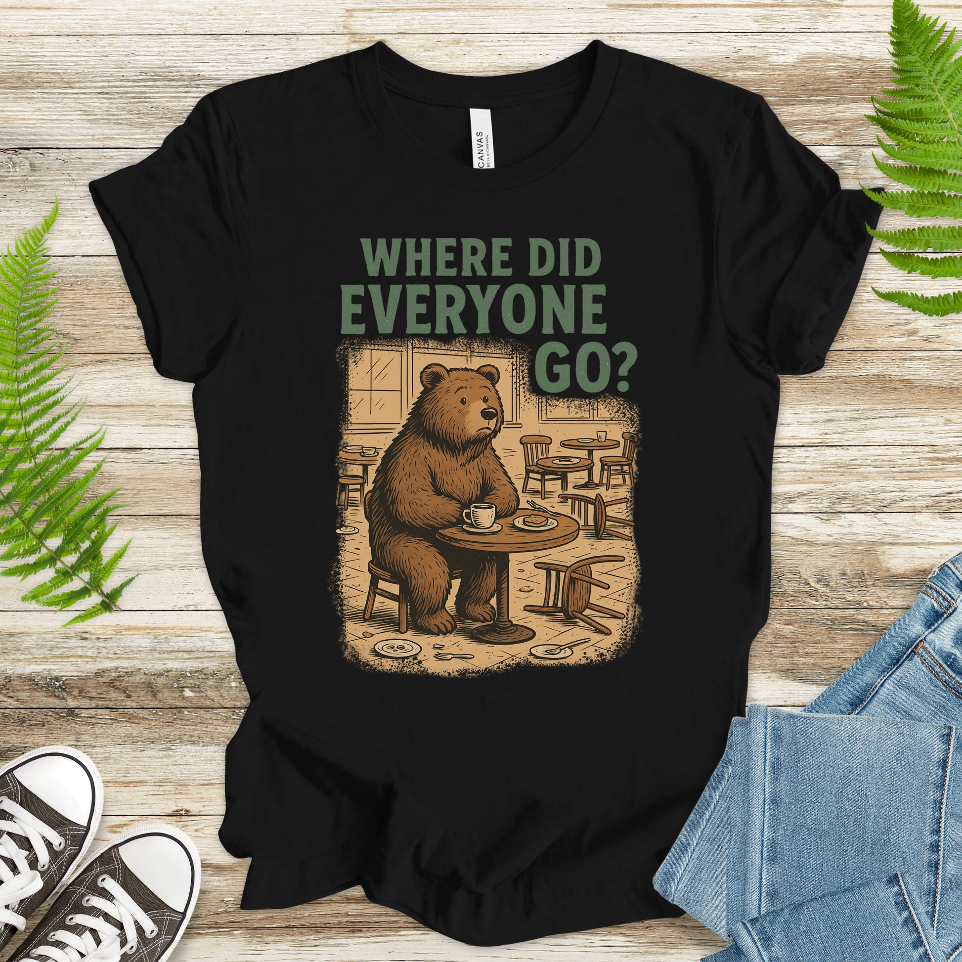 Sitting alone with his cup of coffee, this poor bear just wants to know… Where did everyone go? Equal parts hilarious and adorable, this vintage-style tee is perfect for coffee addicts, animal lovers, and anyone who’s been ghosted by brunch plans. Soft, comfy, and full of playful personality—it’s basically your weekend mood in shirt form.
