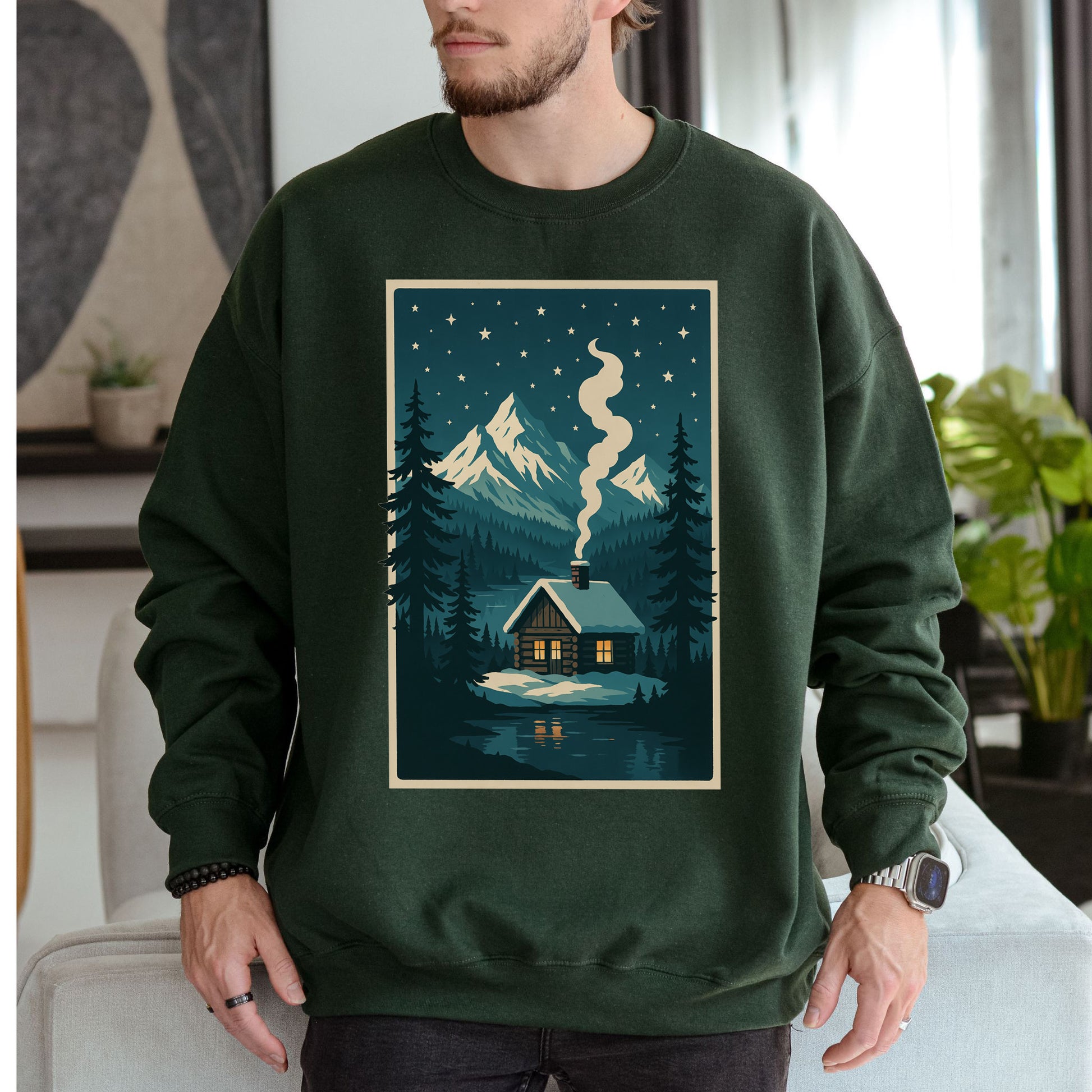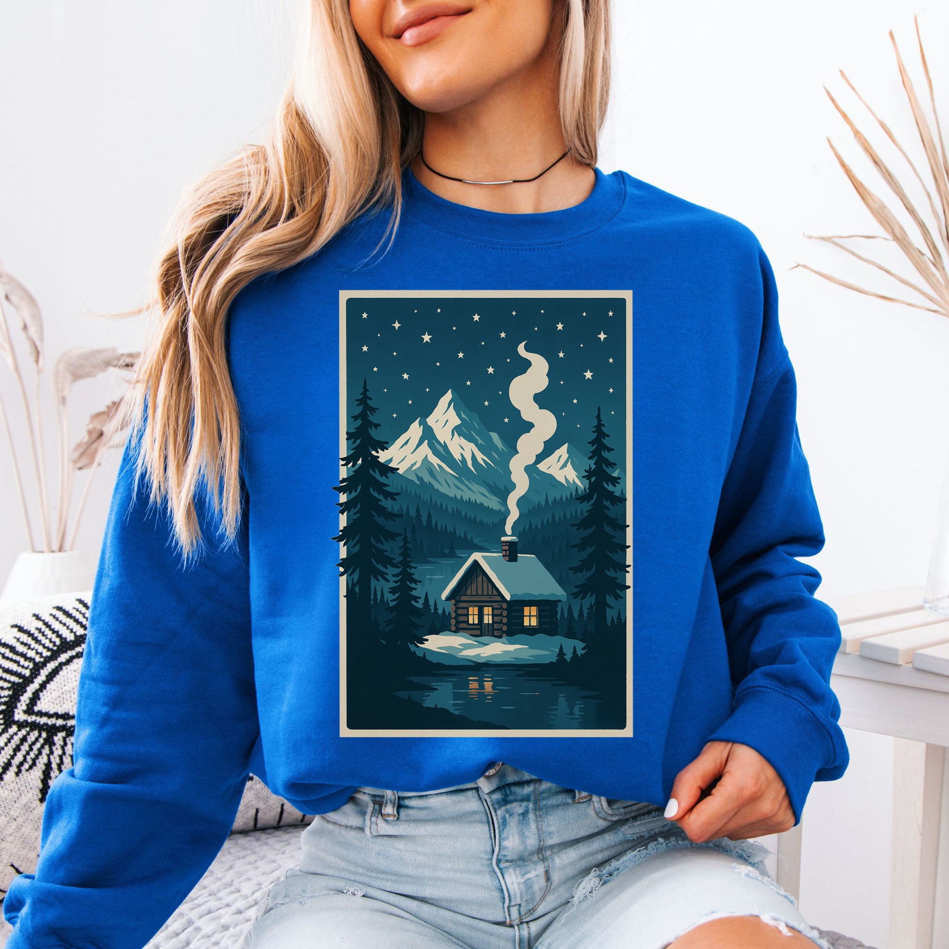 Cozy Cabin Christmas Sweatshirt – Winter Stars & Holiday Escape Vibes
