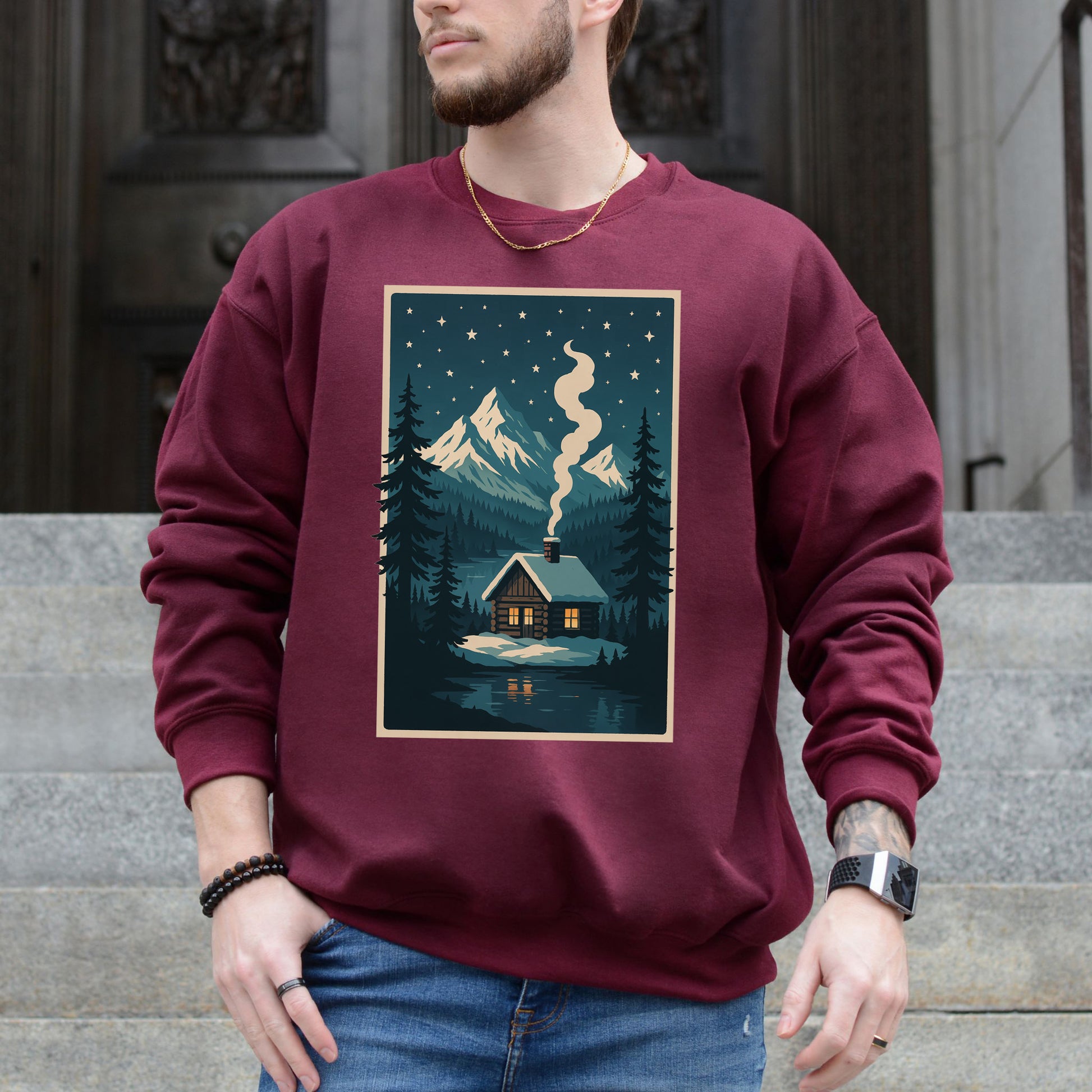 Wrap yourself in Cozy Cabin Christmas vibes with this peaceful sweatshirt featuring a glowing log cabin, snowy mountains, and a sky full of wishes. It’s like wearing a winter postcard from your dream holiday retreat—no packing required.