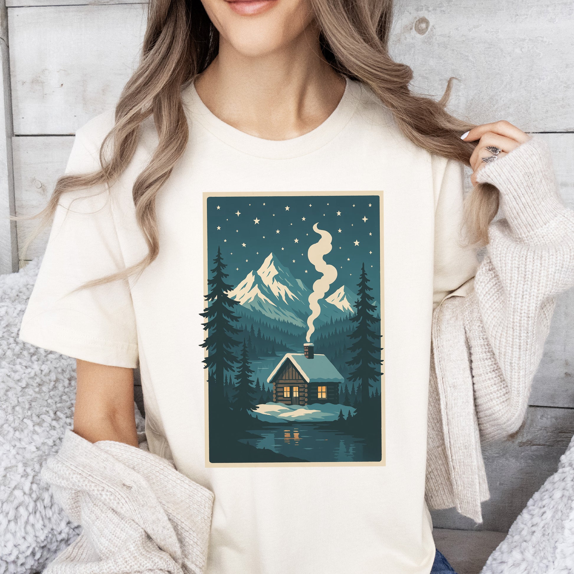 Cozy Cabin Christmas T-Shirt – Winter Stars & Holiday Escape Vibes