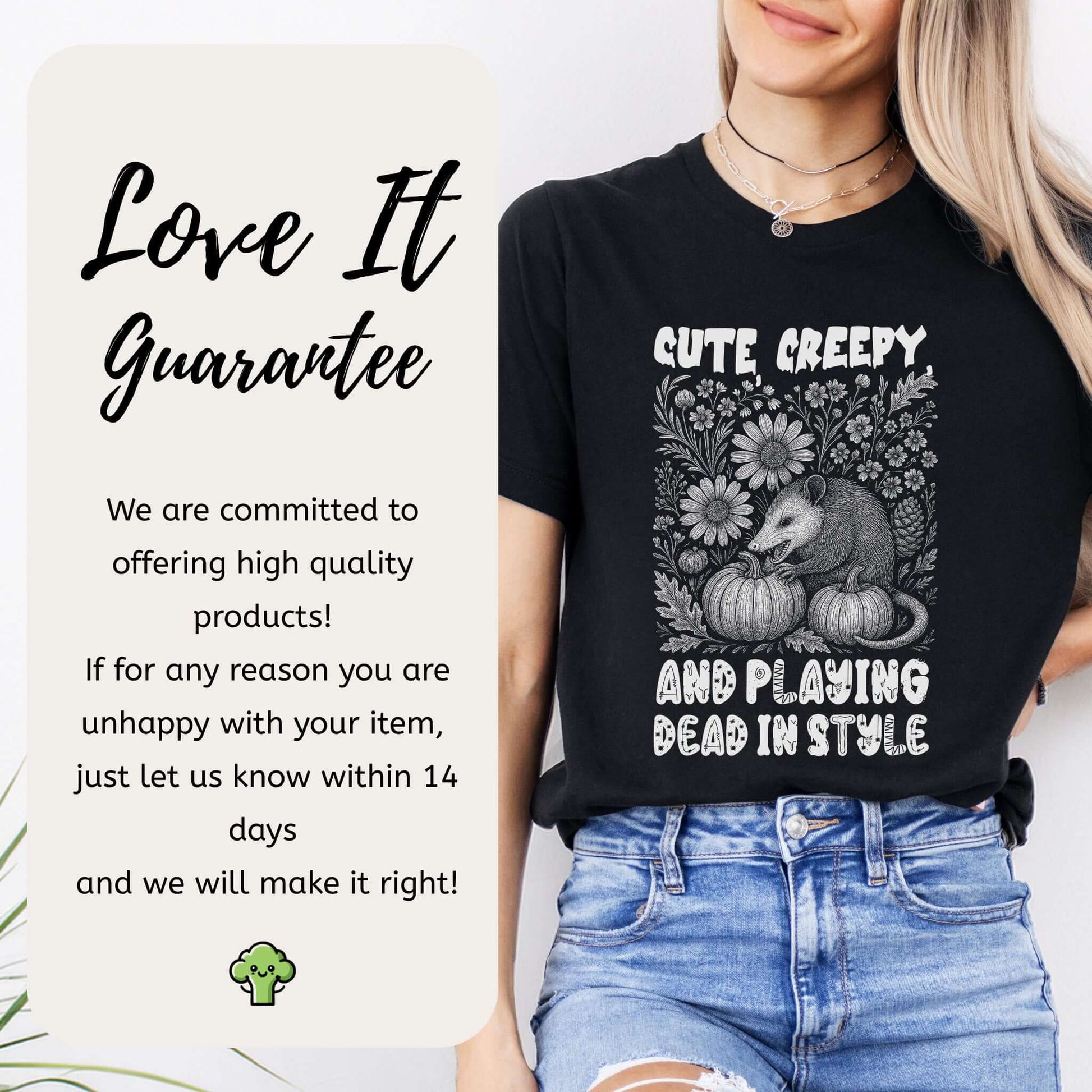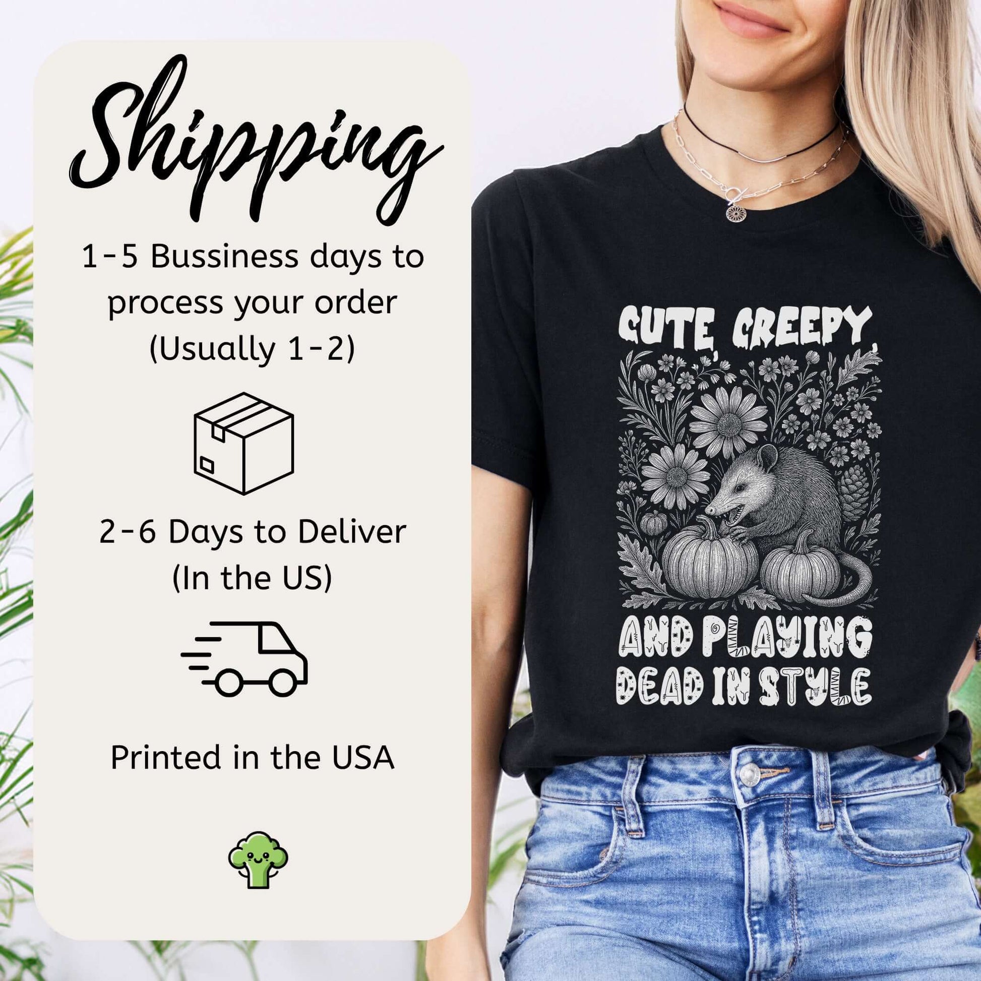 Perfect as a possum lover gift, a cozy fall shirt, or a Halloween t-shirt that says, "Yes, I’m adorable… and slightly unhinged." Great for opossum lovers, witchy Halloween fits, or that friend who’s always ready to emotionally shut down—in style.
