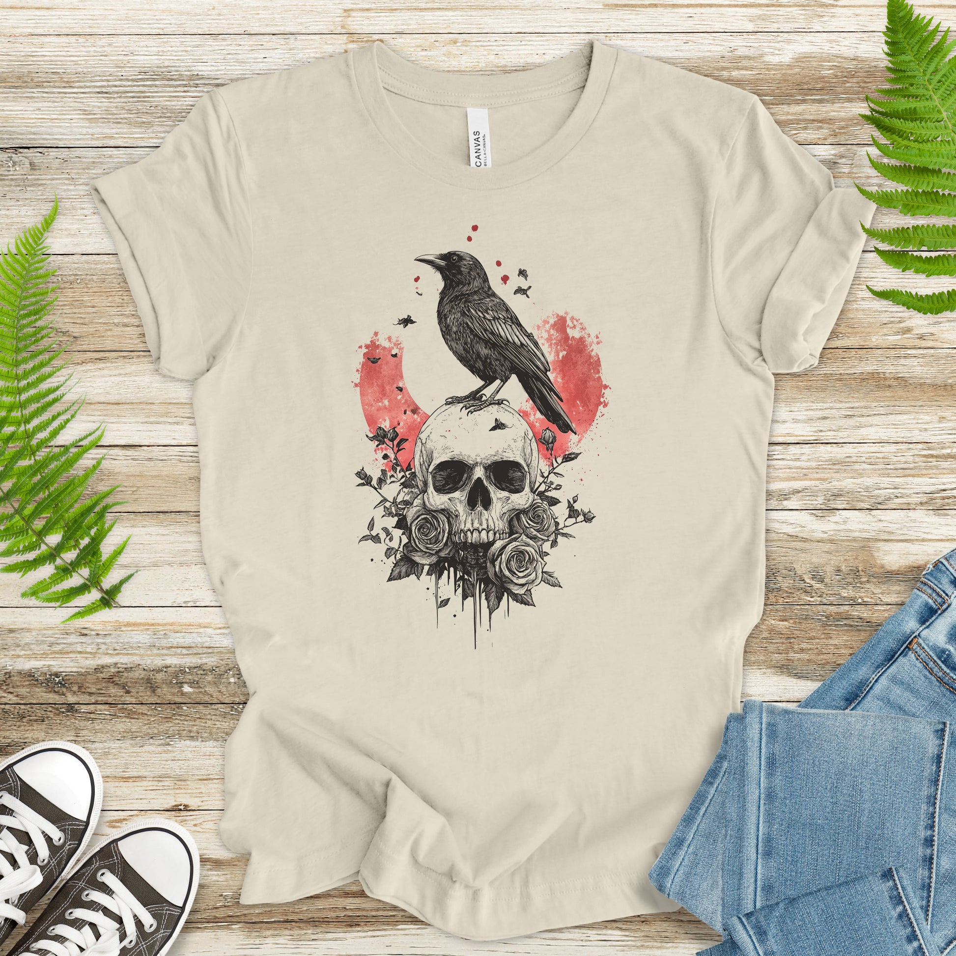Crow and Skull T-Shirt – Gothic Japanese Rose Raven Art Tee