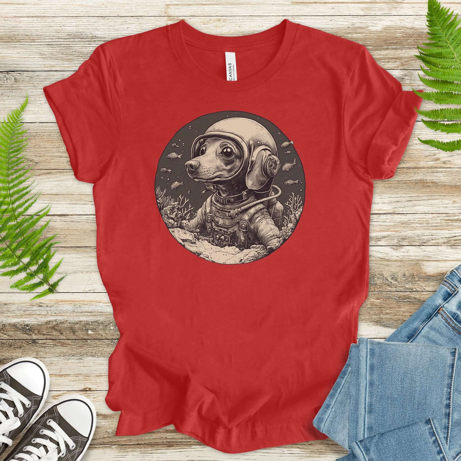 Dive into retro style with our charming Retro Diving Dog T-Shirt! Featuring an adventurous pup exploring underwater coral reefs in a vintage diving helmet, this whimsical design is perfect for dog lovers, divers, or anyone who appreciates quirky and nostalgic illustrations. Grab this tee and make a splash with playful underwater vibes!