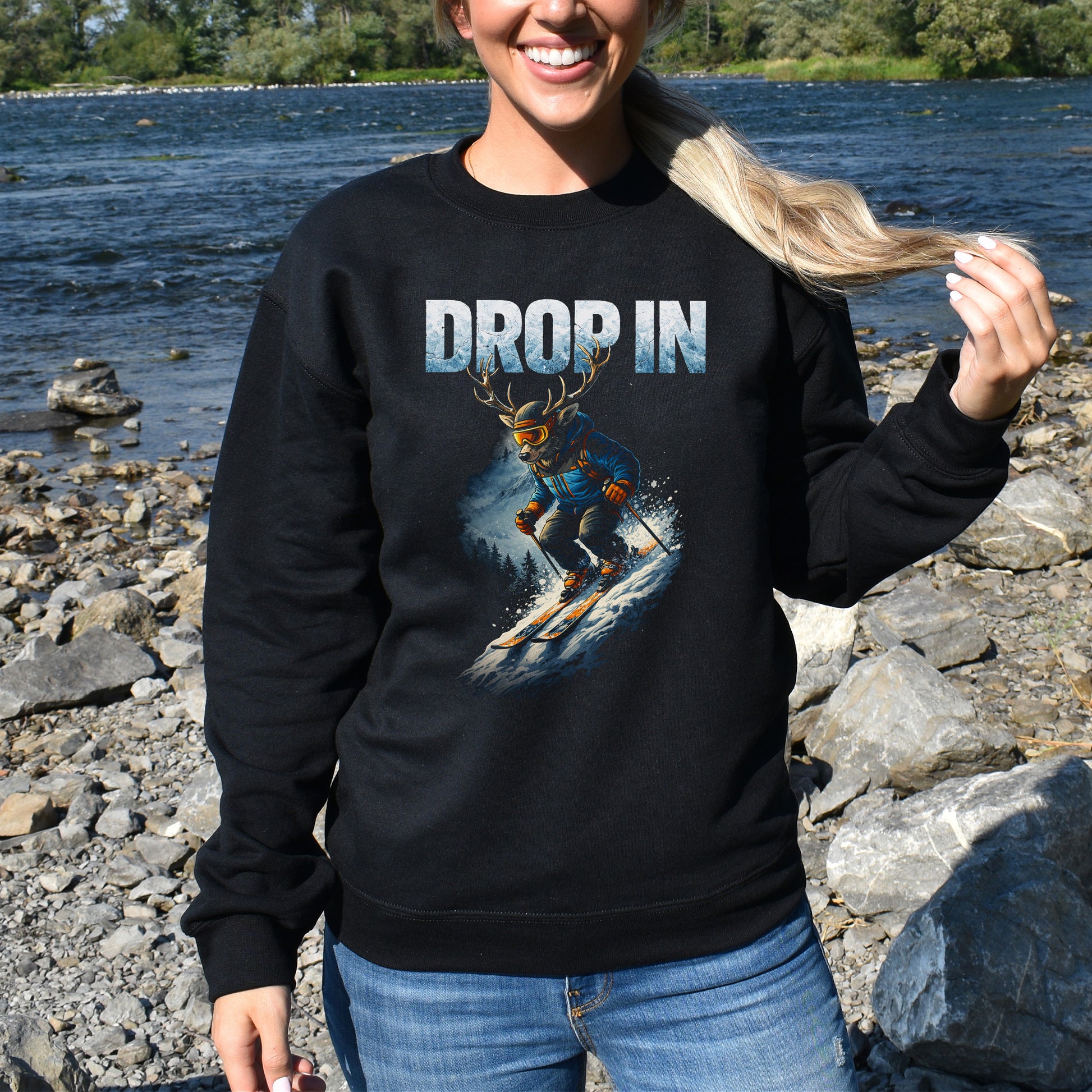 Drop straight into winter thrill with this epic “Drop In” sweatshirt, featuring a fearless, ski-shredding forest creature blasting down the mountain. Bold, funny, and built for anyone who lives for powder days, crisp air, and that first exhilarating push off the edge.