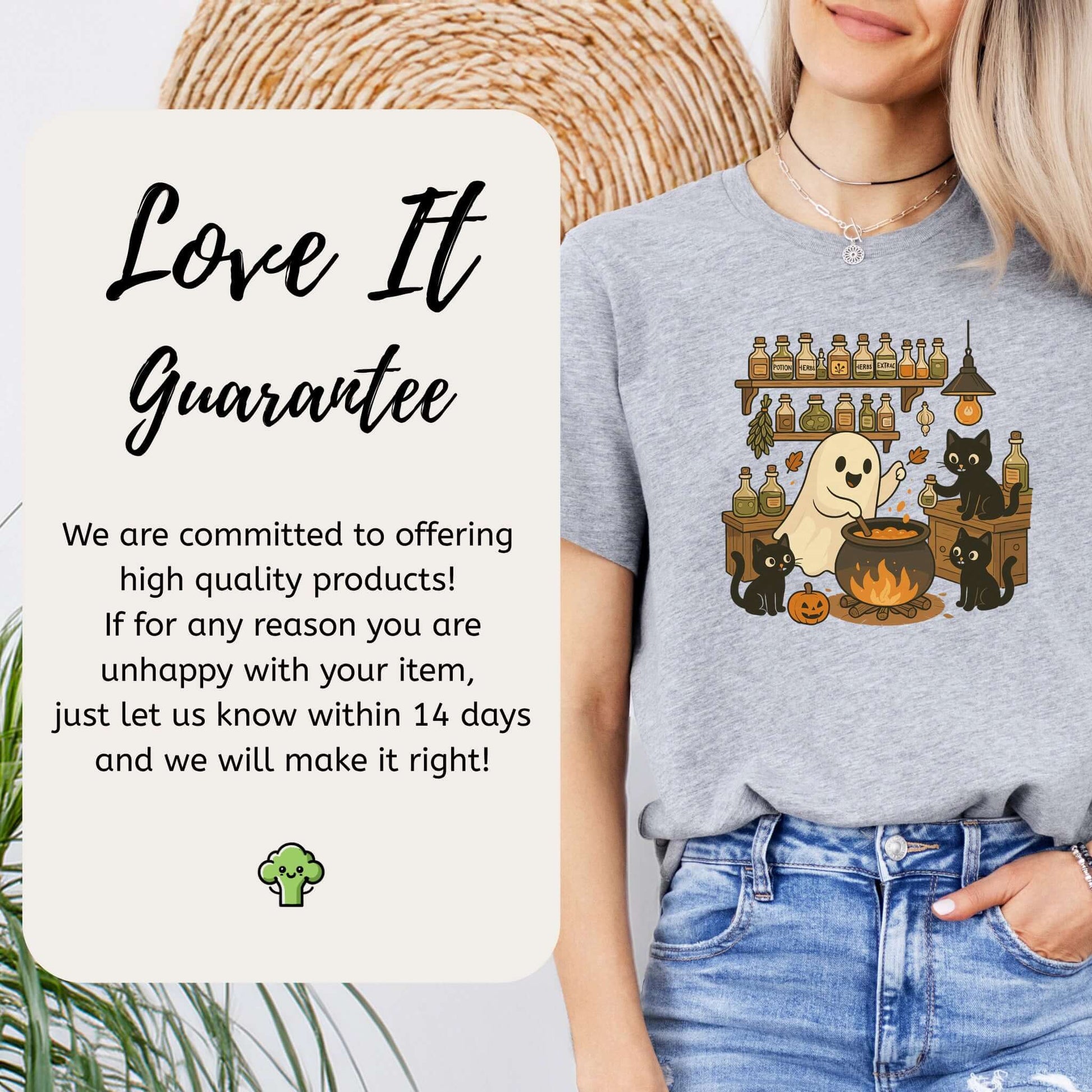 Whether you’re looking for a Halloween cat t-shirt, a spooky gift for cat lovers, or a fall-autumn shirt to wear while you stir up some mischief (or tea), this is your go-to cozy spell of the season.