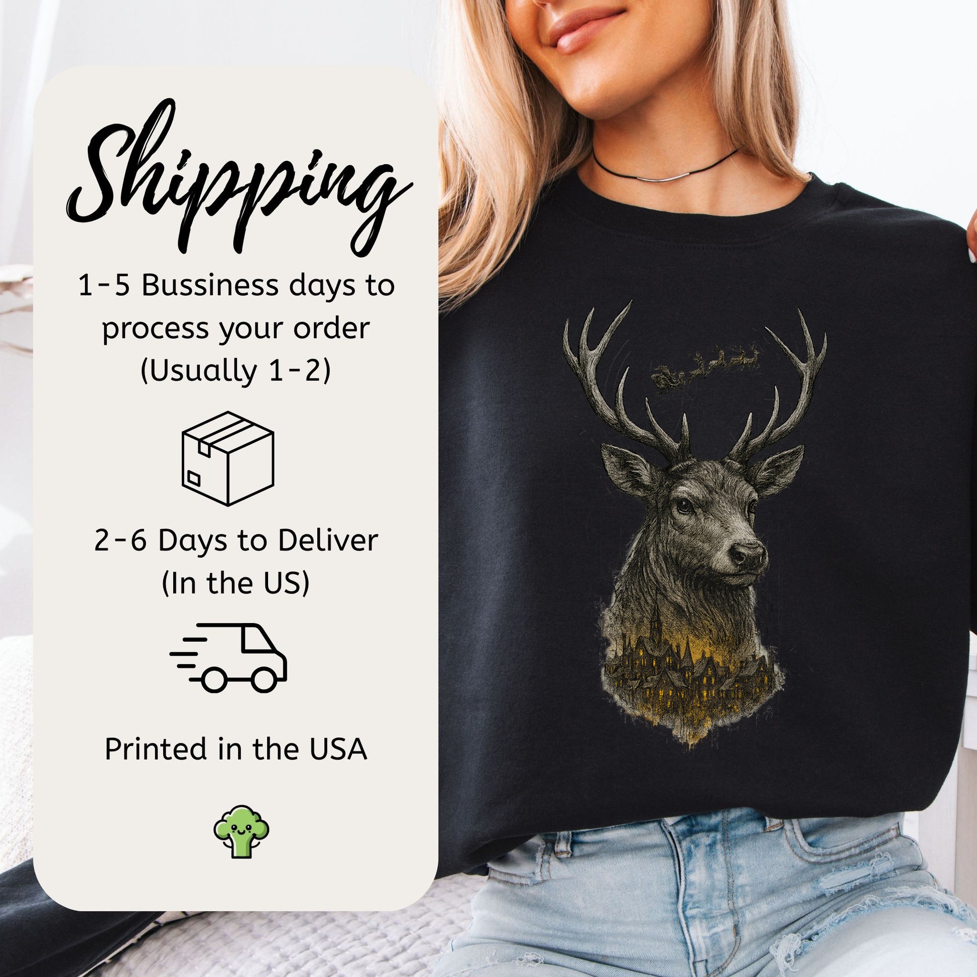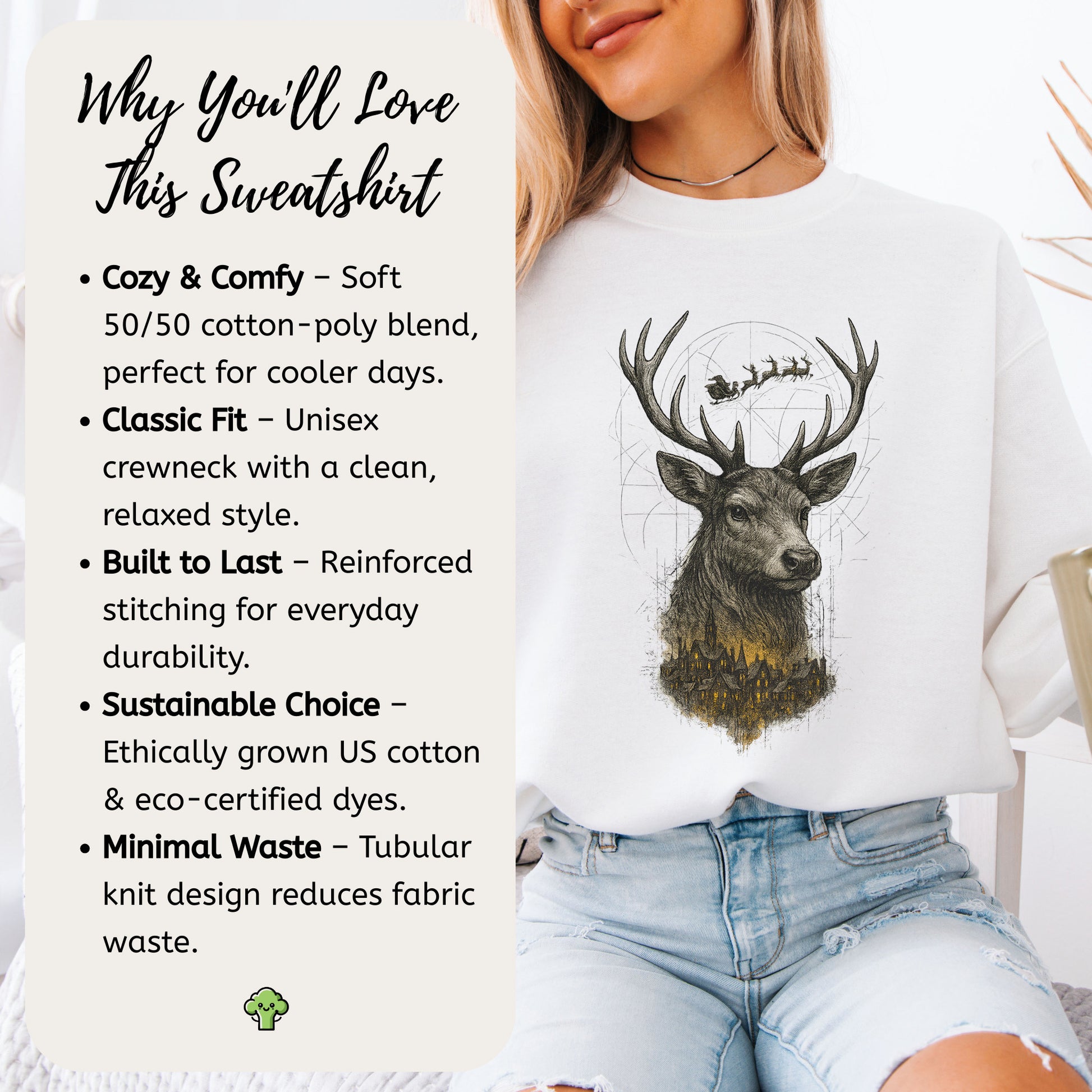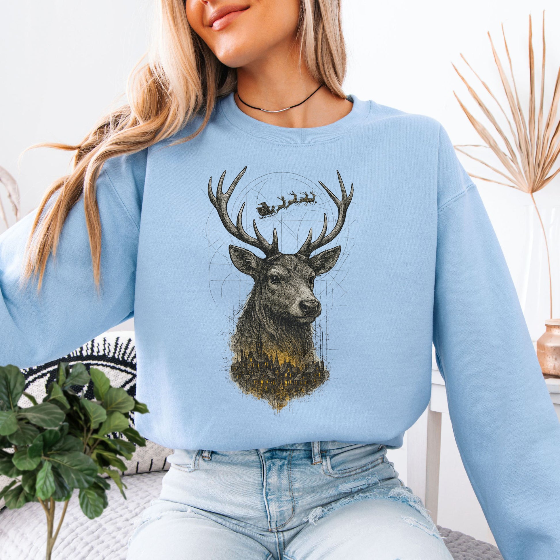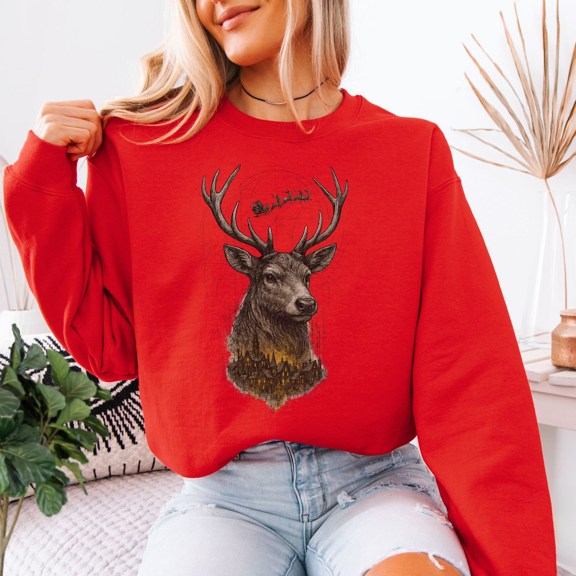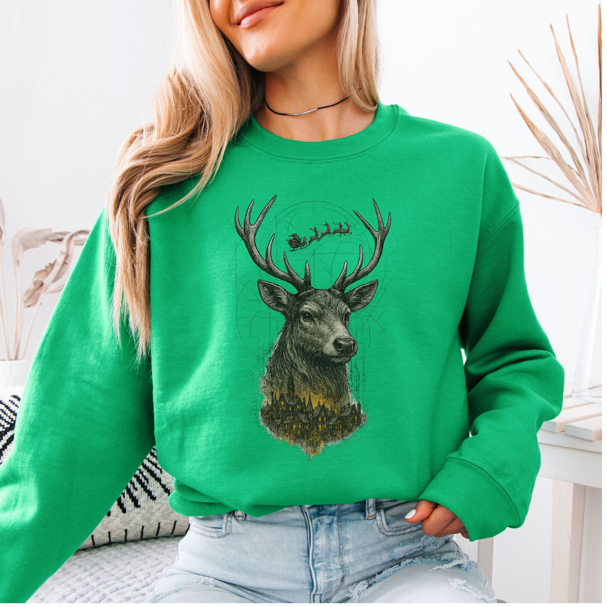 Guardian Reindeer Christmas Sweatshirt – Mystical Winter Village Magic