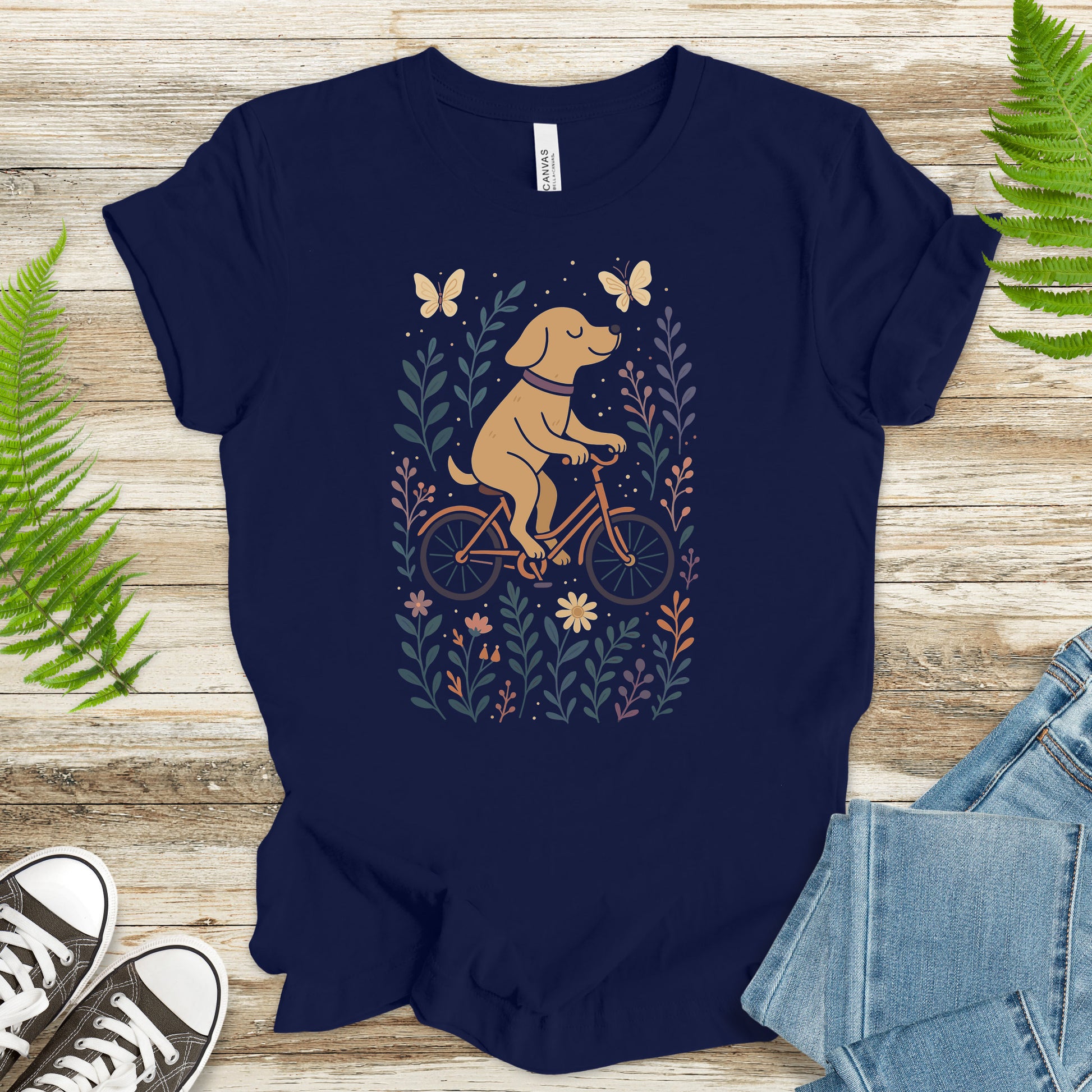 Joyful Dog on a Bike T-Shirt – Whimsical Nature & Butterfly Lover Tee