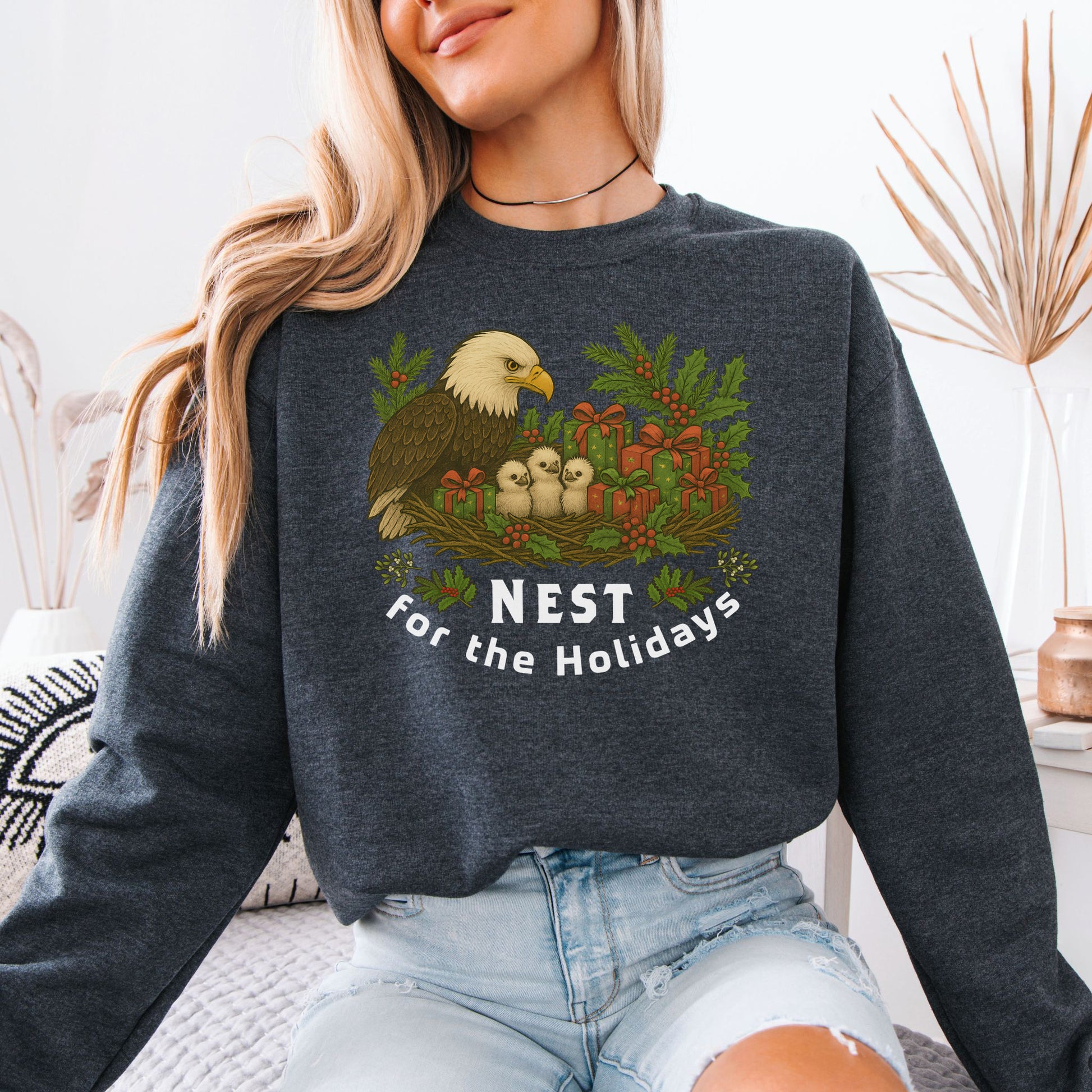 Nest for the Holidays Sweatshirt – Funny Bald Eagle Christmas Cozy