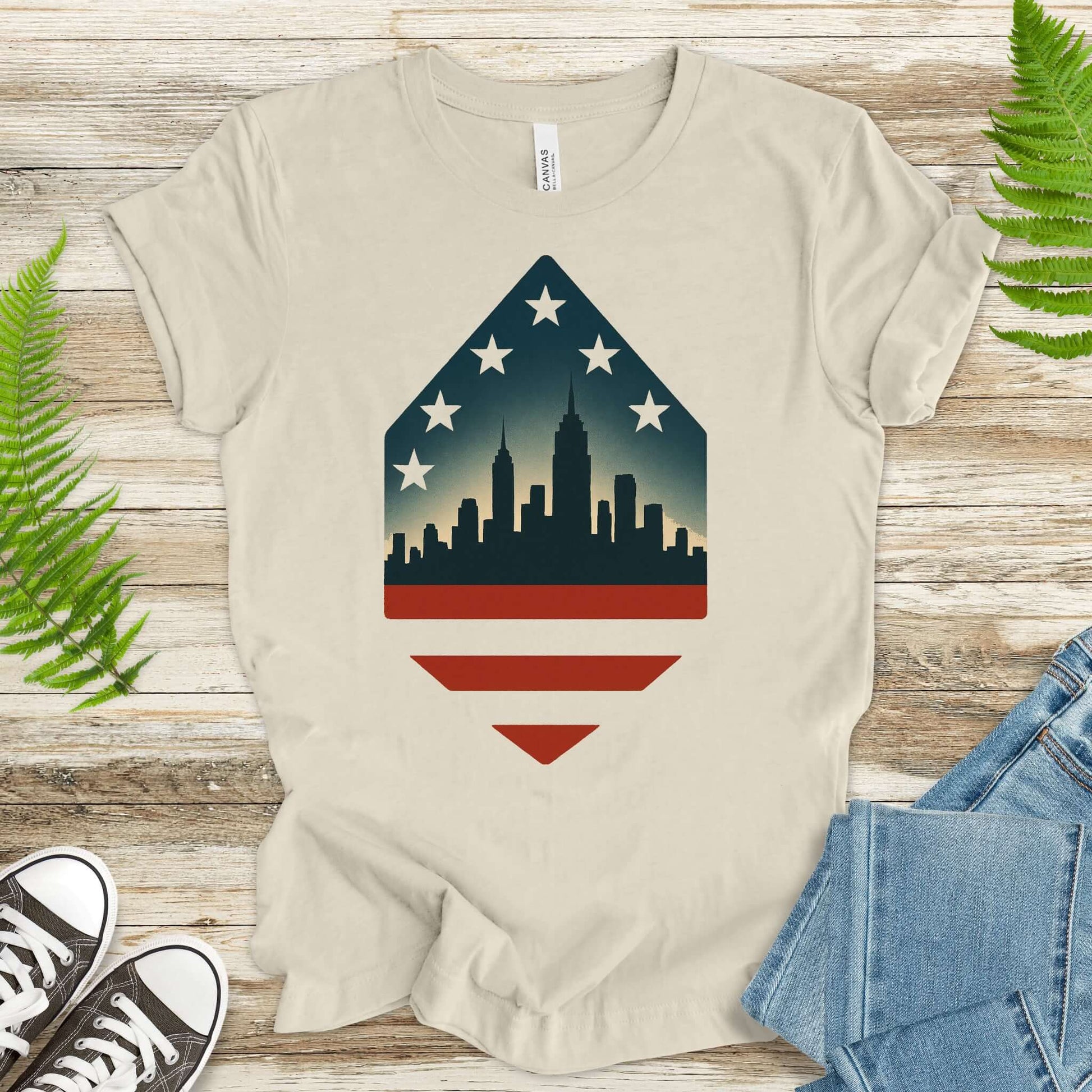 Perfect for rooftop fireworks, park picnics, or strutting through the city like it’s your personal parade route. Whether you're a proud New Yorker or just love that classic Empire State energy, this shirt says “America” with concrete jungle swagger.