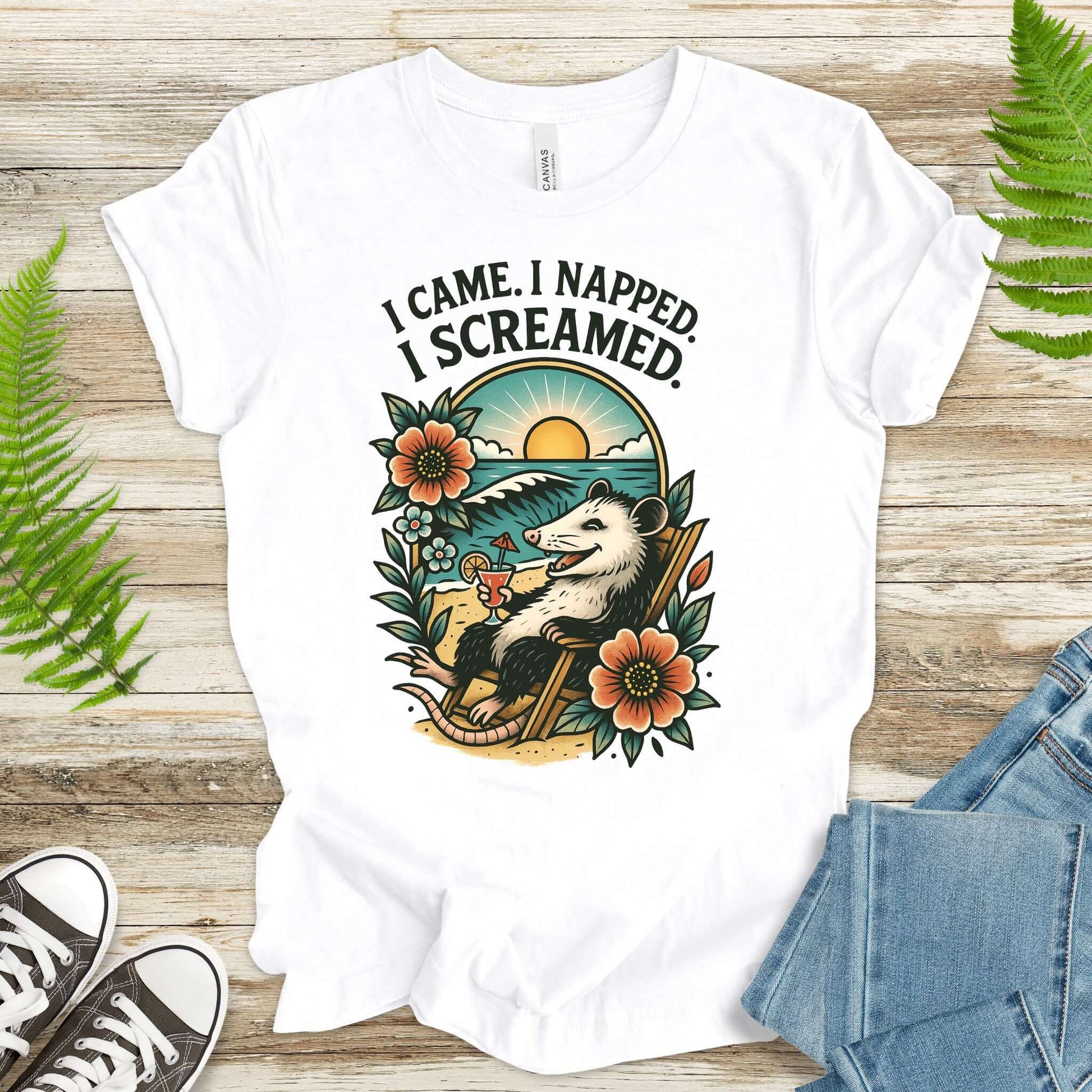 Opossum Beach Vacation – I Came, I Napped, I Screamed T-Shirt