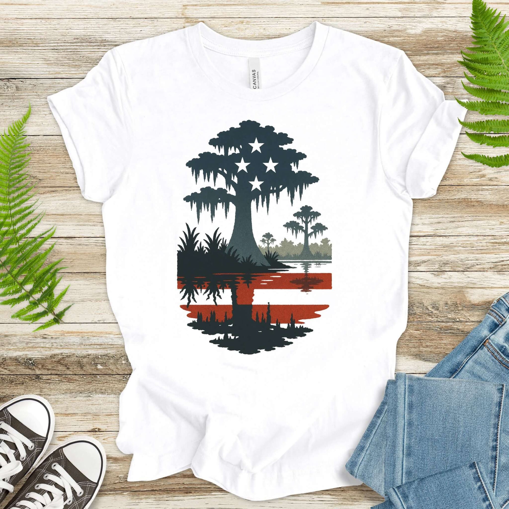 Patriotic Swamp Scene T-Shirt – Bayou & Everglades 4th of July Tee