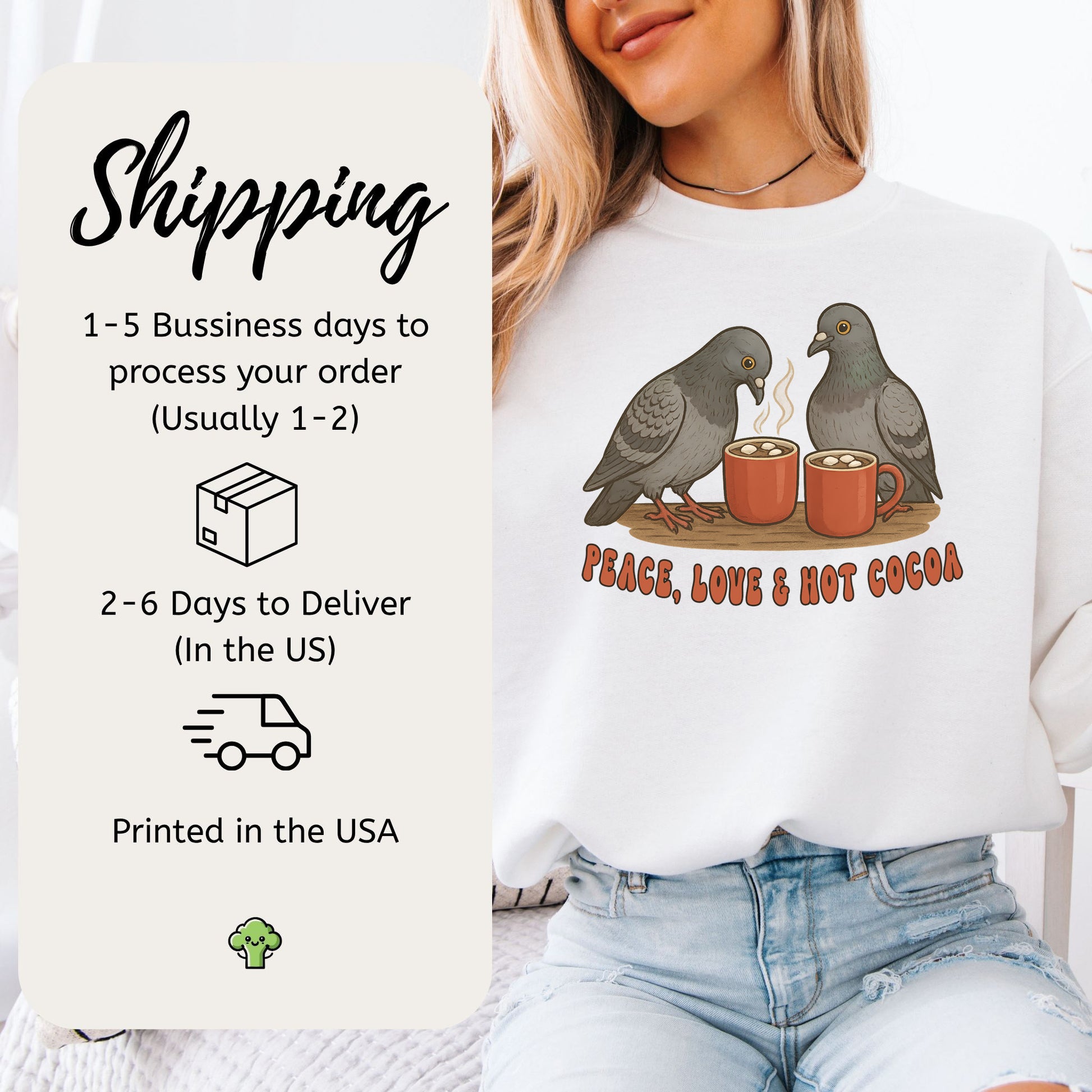 Peace, Love & Hot Cocoa Sweatshirt – Cozy Pigeon Christmas Gift