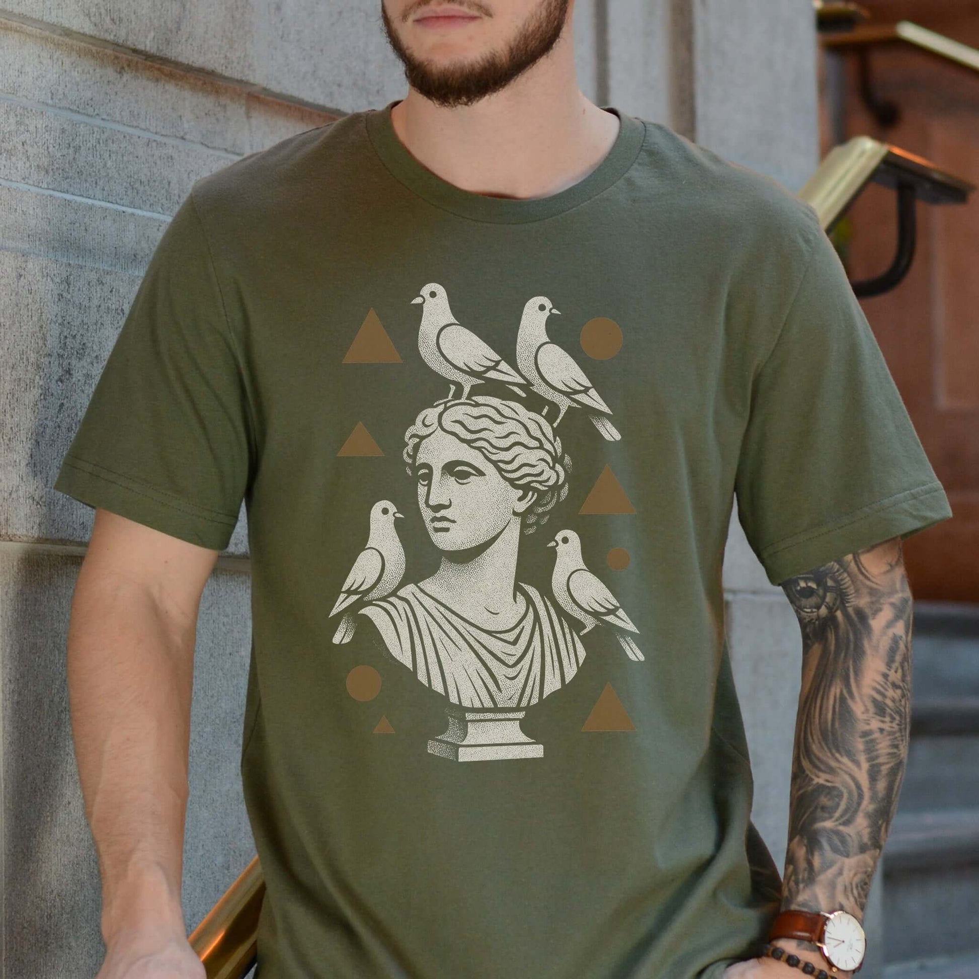 Pigeons & Statues T-Shirt – Minimalist Greek Vibes Tee