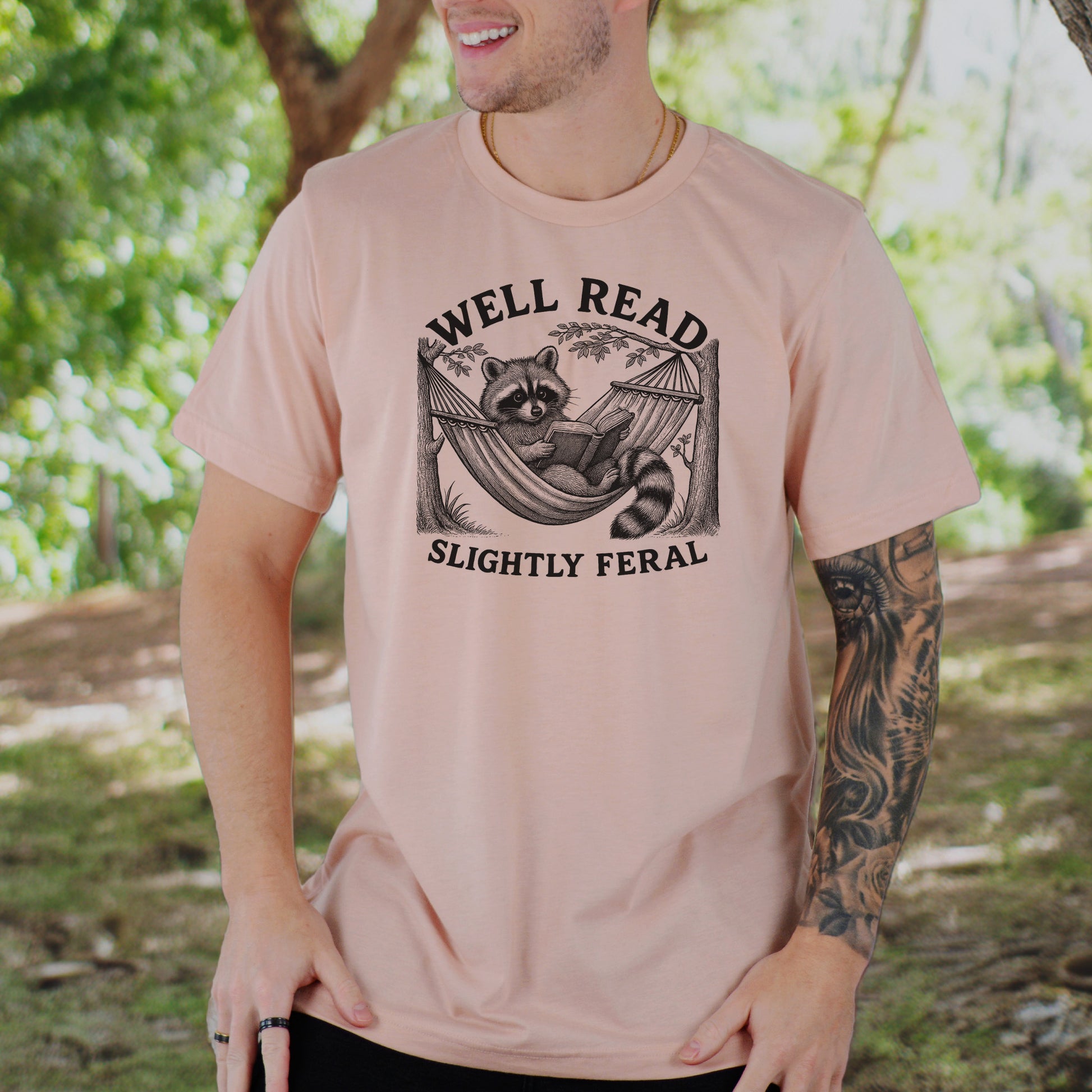 Raccoon Well Read Slightly Feral T-Shirt – Funny Book Lover Tee for Raccoon Fans