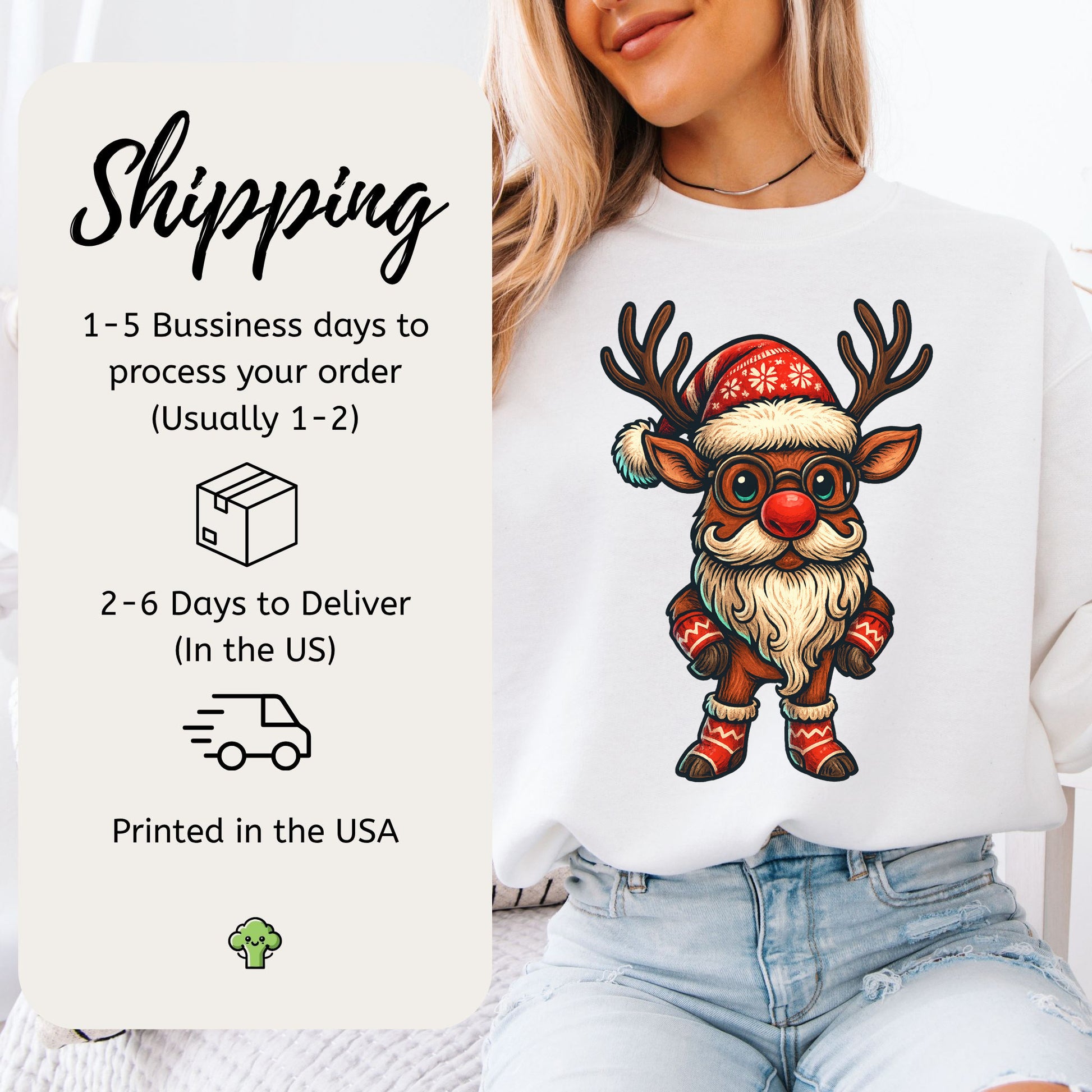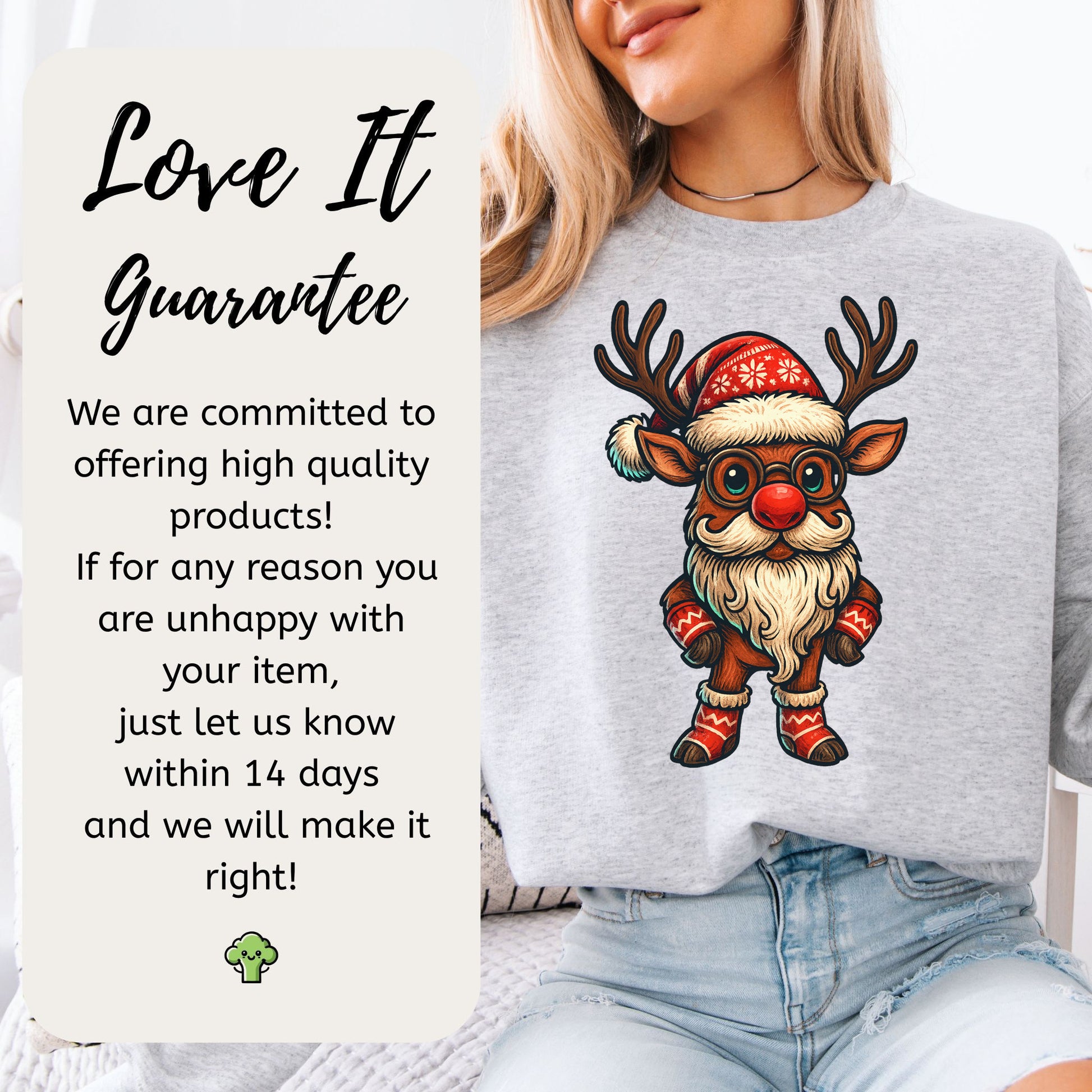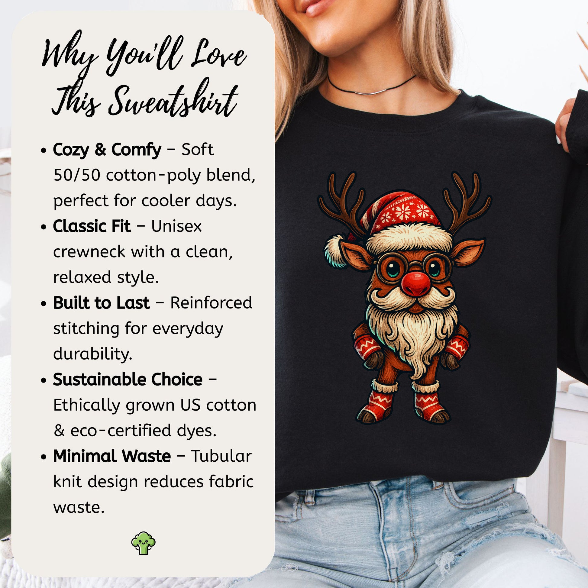 This reindeer didn’t just guide the sleigh—he became the sleigh boss. Rocking a full Santa beard, knitwear, and Big North Pole energy, he’s bringing festive fashion and serious gift-distribution vibes. Perfect for holiday rebels, reindeer superfans, and anyone who likes their Christmas with a side of cozy chaos.