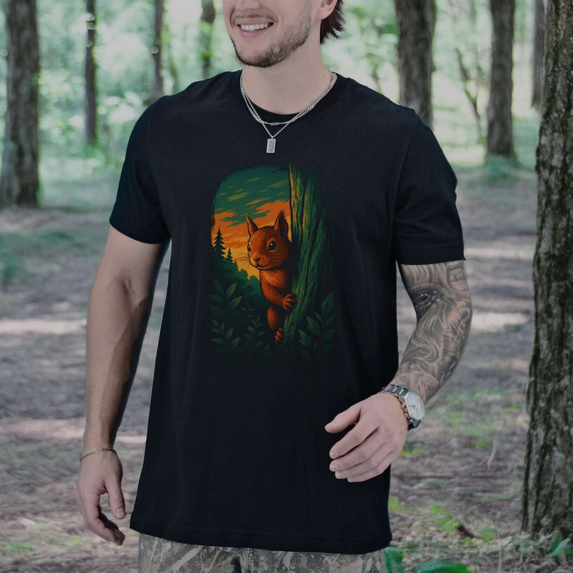 Squirrel Peeking in Forest T-Shirt – Spirit Animal of Playfulness