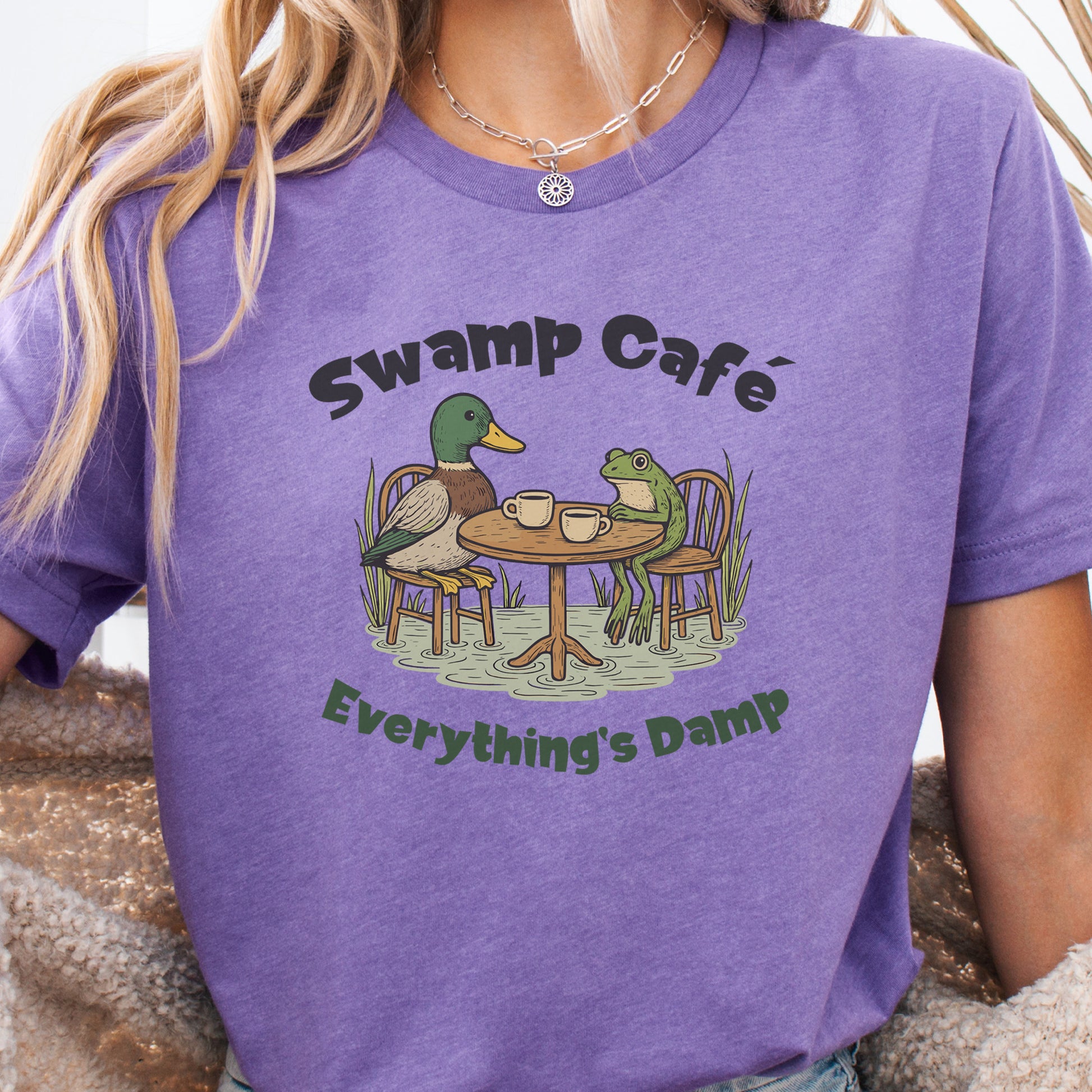 Swamp Café Funny Frog & Duck Coffee T-Shirt – Retro Nature Meme Gift