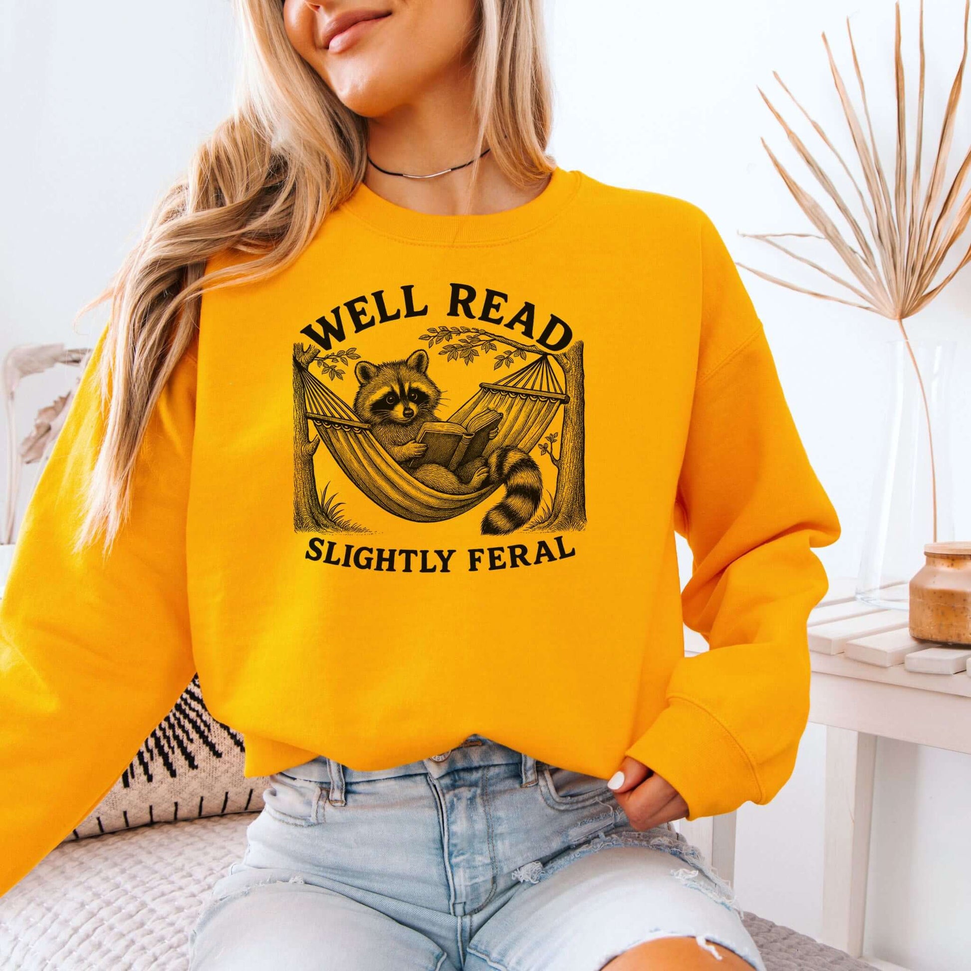 Well Read, Slightly Feral Raccoon Sweatshirt – Funny Book Lover & Trash Panda Gift