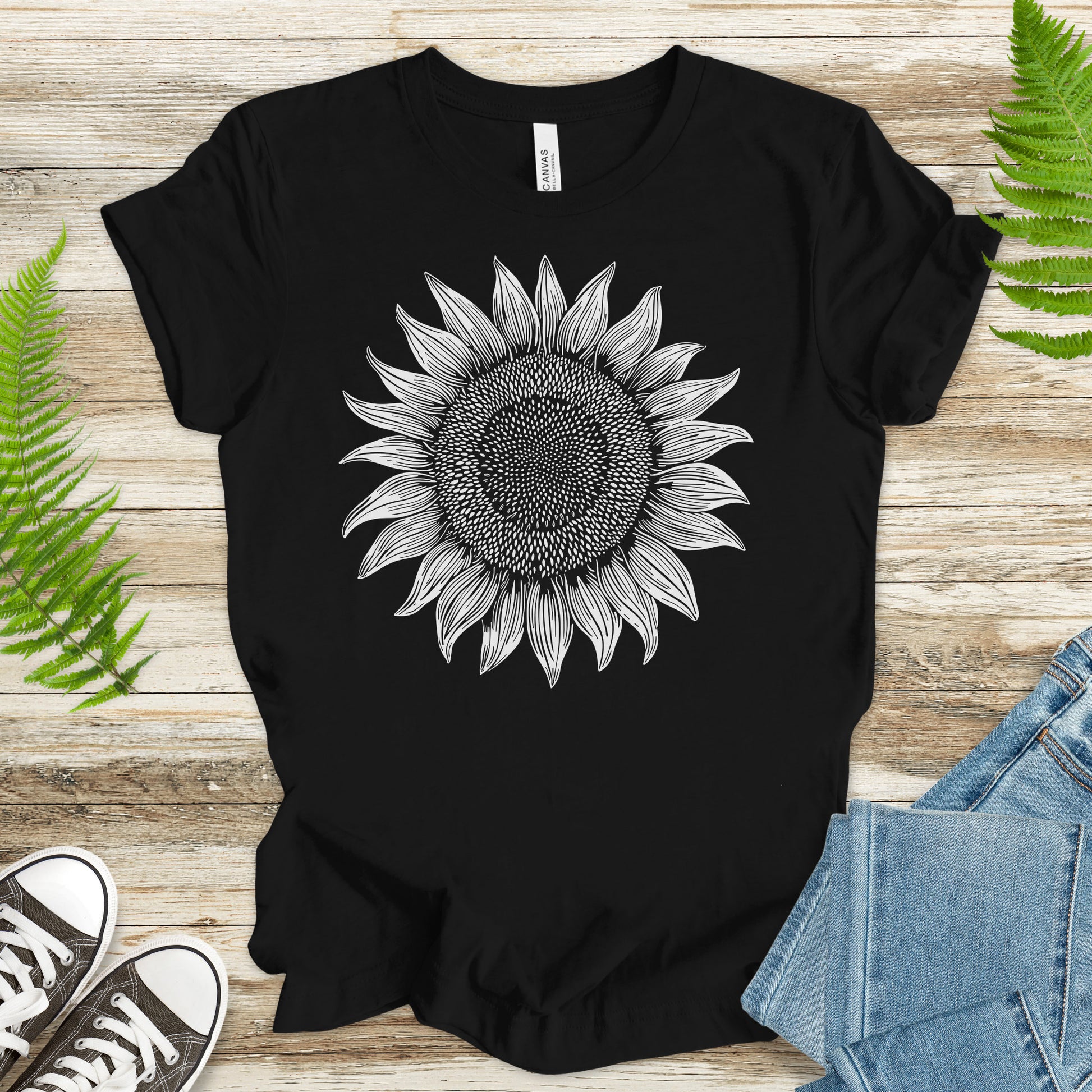 White Sunflower Sketch T-Shirt – Vintage Floral Garden Lover Tee