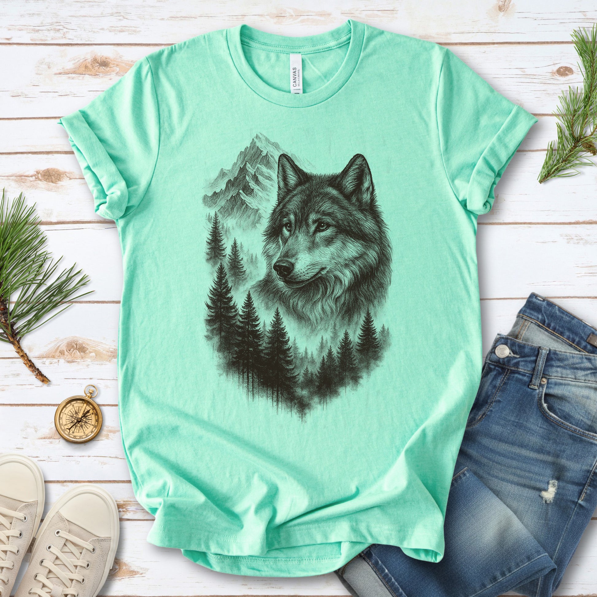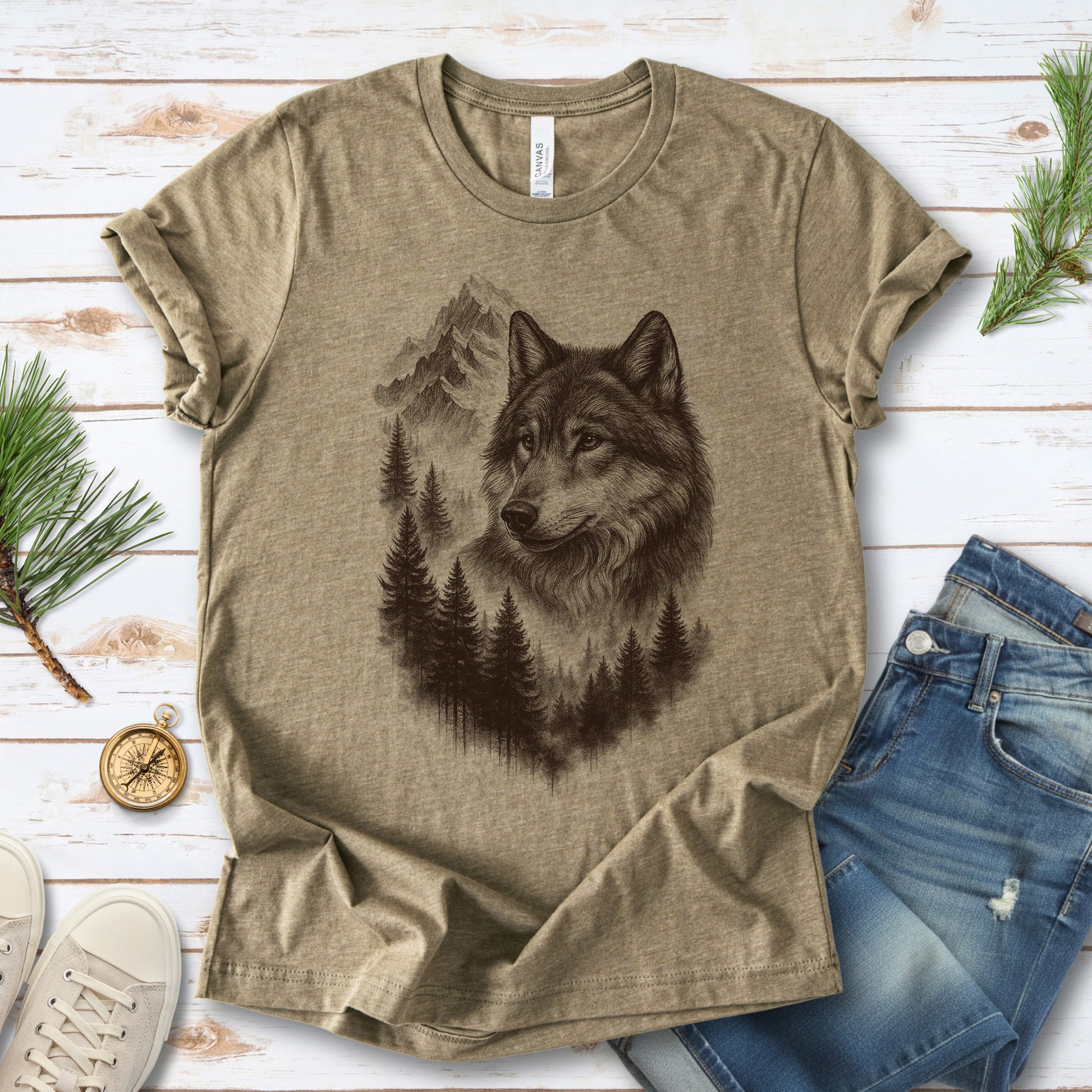 Wolf Mountain Forest T-Shirt – Vintage Alpha Nature Adventure Tee